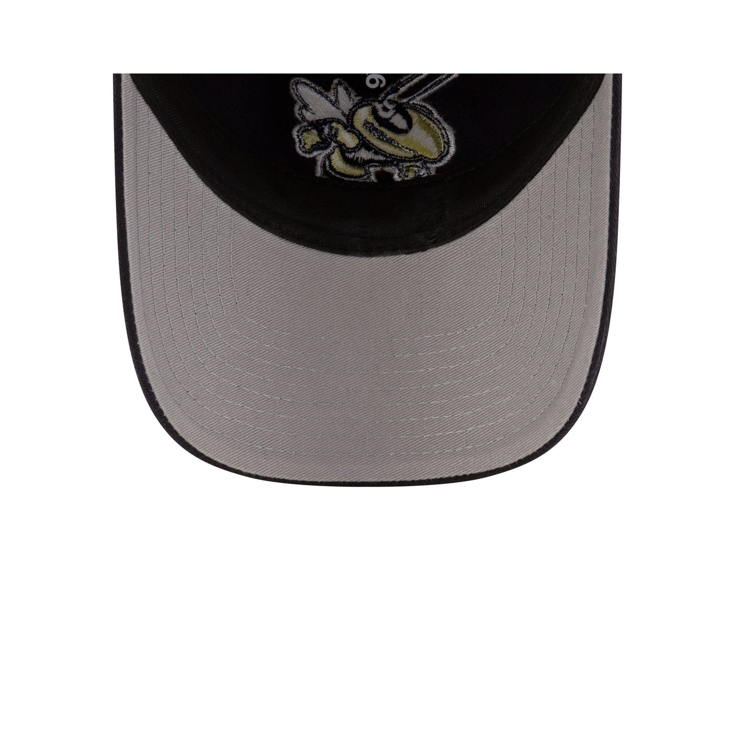The Georgia Tech Yellow Jackets Mascot 9TWENTY Adjustable Cap features an embroidered Yellow Jackets mascot at the front panels with an adjustable D-Ring closure at the rear and a gray undervisor.