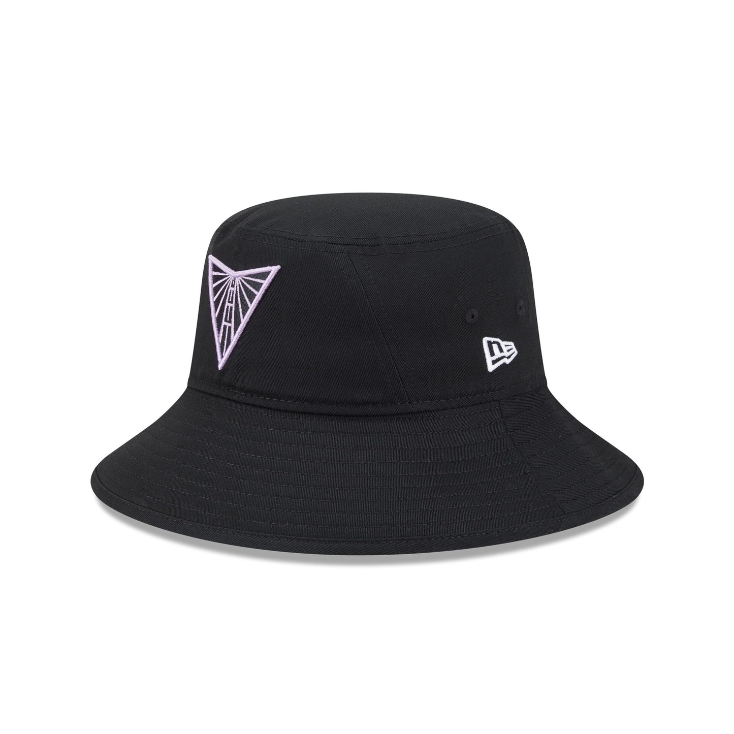 The Golden State Valkyries Team Color Bucket Hat features an embroidered Valkyries logo at the front with a New Era Flag at the left-wear side.