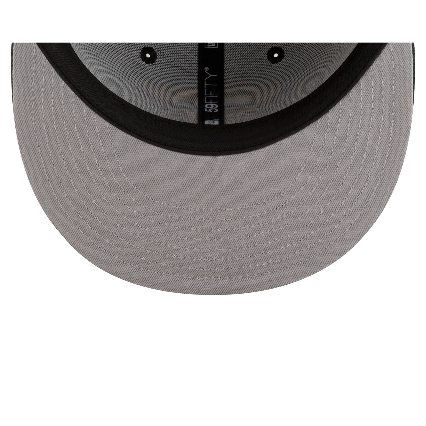 The Golden State Warriors 2024 Statement Edition 59FIFTY Fitted Cap features an embroidered Warriors wordmark at the front panels with a matching NBA Logoman at the rear. Additional details include a team logo at the right-wear side and a gray undervisor.