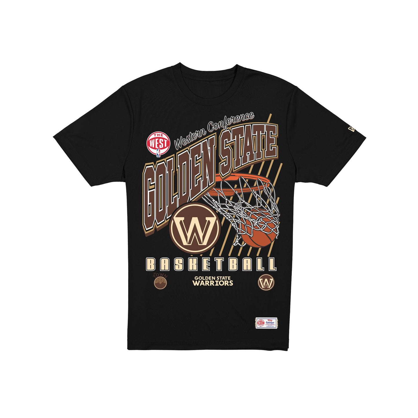 The Golden State Warriors 2025 City Edition Black T-Shirt features a screen-printed Warriors City Edition graphic at the front and a City Edition jock tag at the left hip.