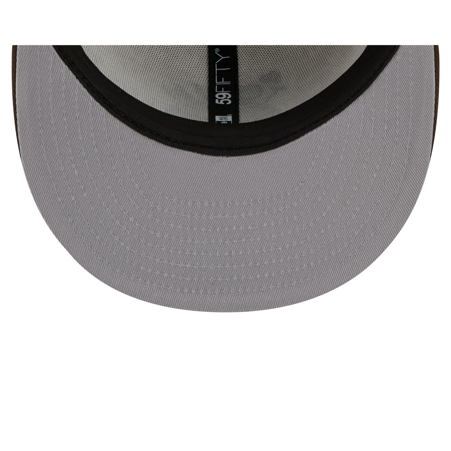 The Golden State Warriors 2025 City Edition Chrome White Corduroy 59FIFTY Fitted Cap features an embroidered Warriors City Edition logo at the front panels with a City Edition jock tag stitched at the right-wear side. Additional details include a corduroy fabrication, the NBA Logoman at the rear, and a gray undervisor.