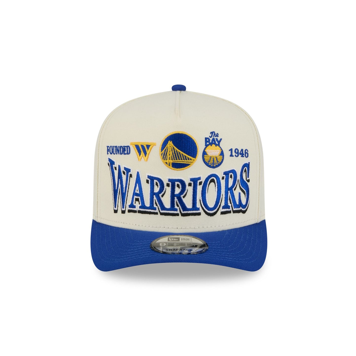 The Golden State Warriors All-Star Game Established 9FIFTY A-Frame Snapback features an embroidered Warriors wordmark and establishment graphic at the front panels with an adjustable snapback closure at the rear and a green undervisor.