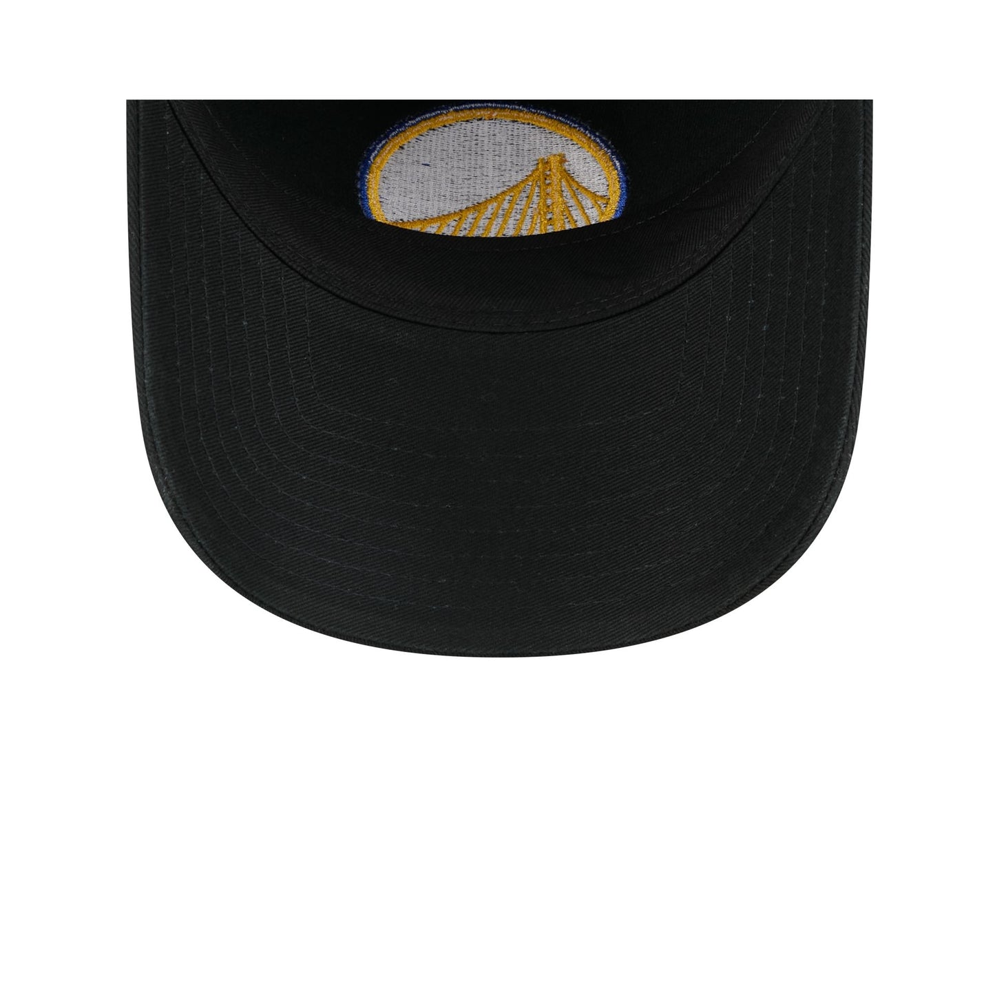 The Golden State Warriors Black 9TWENTY Adjustable Cap features an embroidered Warriors logo at the front panels with a matching woven team logo tag at the adjustable D-Ring closure at the rear.