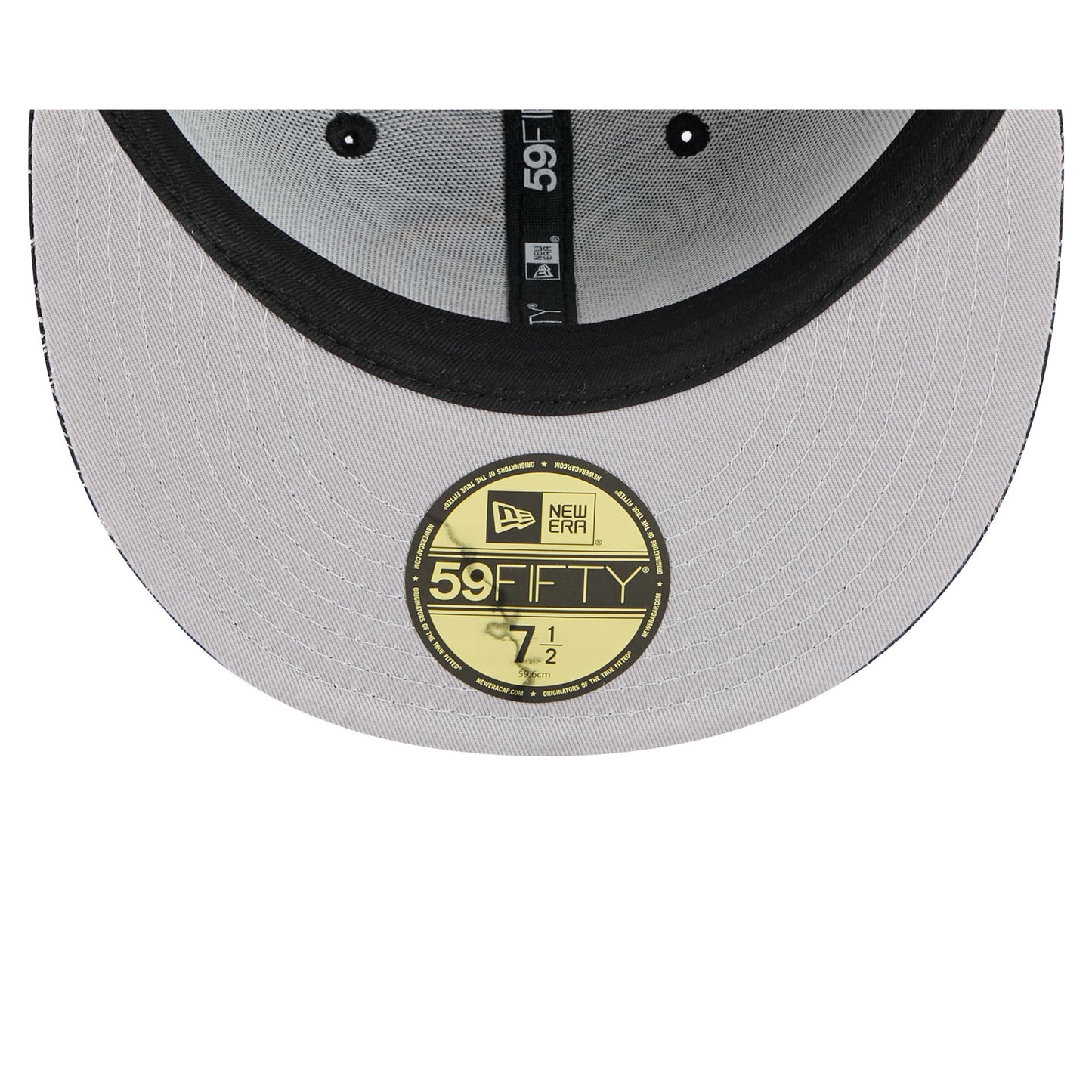 The Golden State Warriors Cap Scramble 59FIFTY Fitted Cap features an embroidered Warriors logo at the front panels with chainstitched allover cap patterned fabrication, an NBA Logoman at the rear, and a gray undervisor.