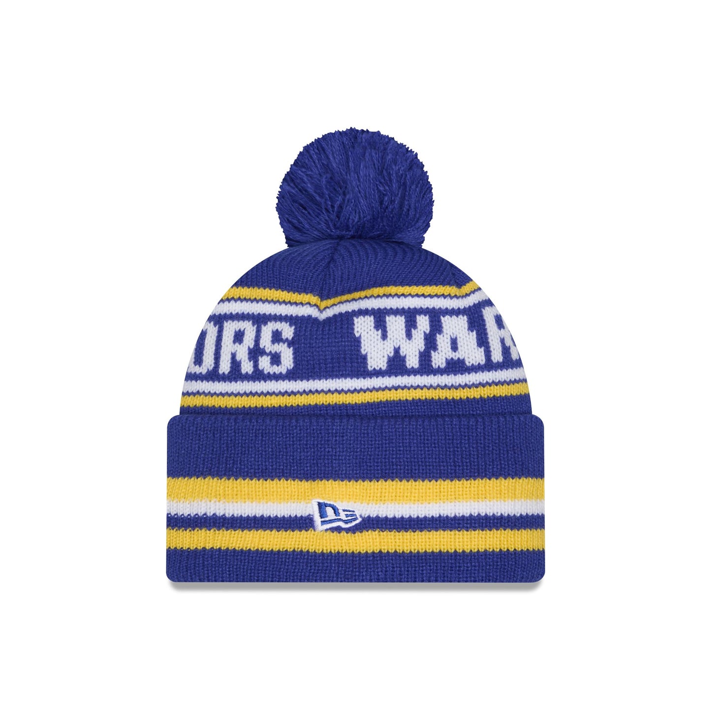 The Golden State Warriors Classic Pom Knit Hat features an embroidered Warriors logo at the front cuff with a wordmark at the crown and a one-time removable pom.