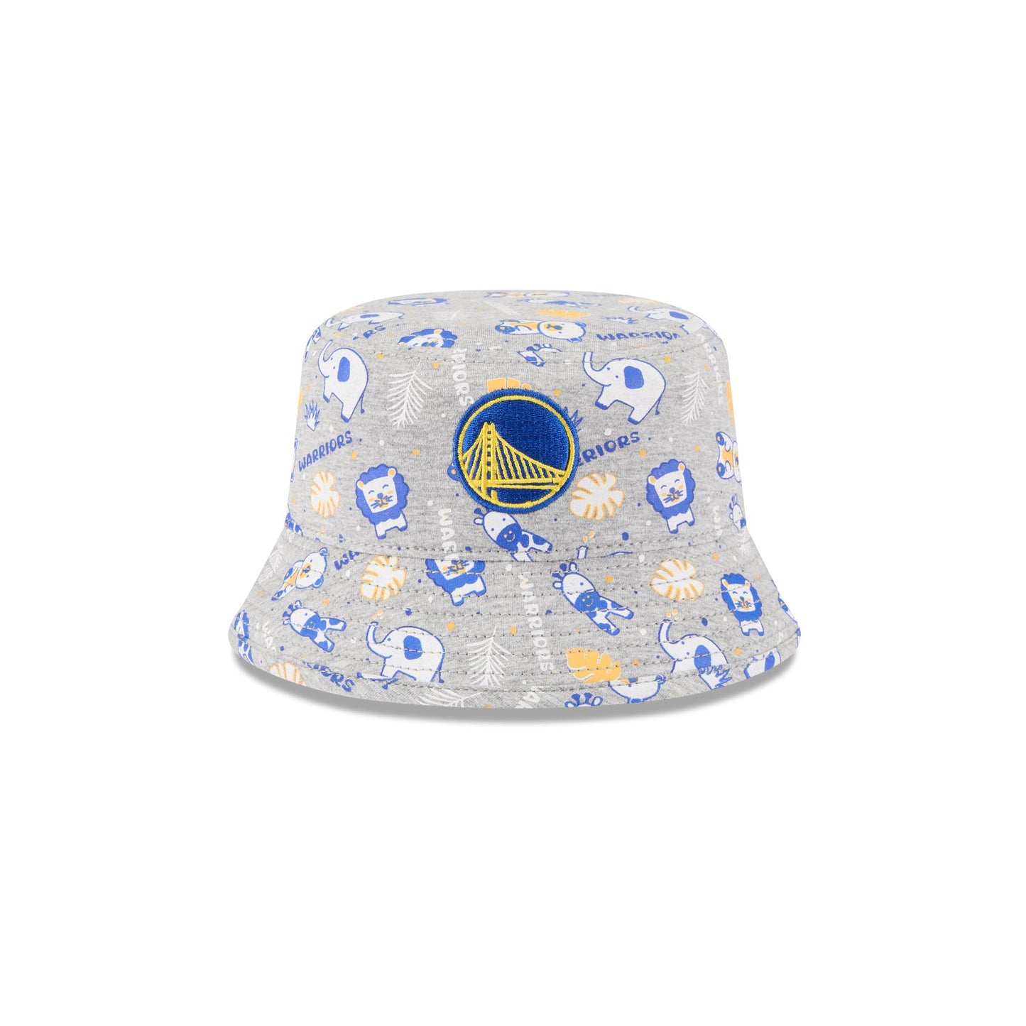 The Golden State Warriors Kids Animal Bucket Hat features an embroidered Warriors logo at the front with screen-printed animals throughout.