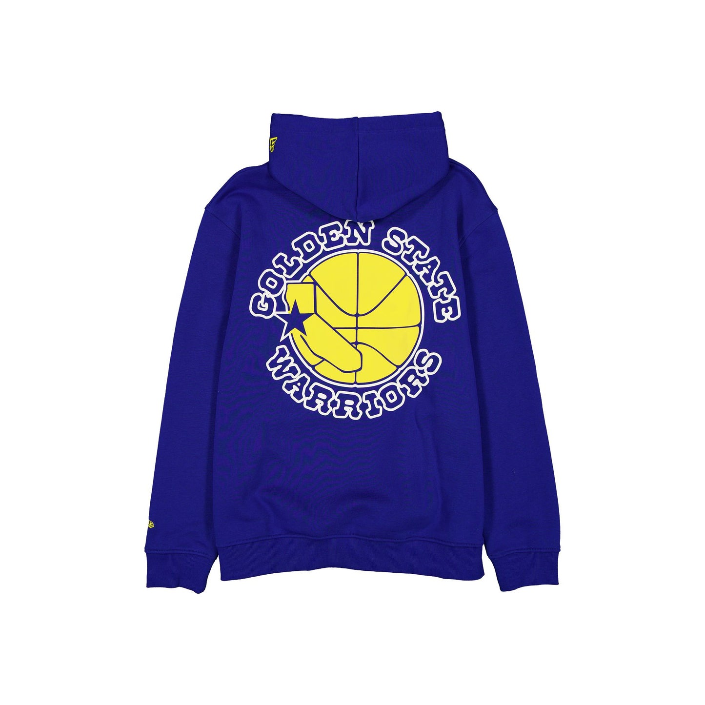 The Golden State Warriors Retro Black Hoodie features an embroidered Warriors Hardwood Classics logo and a screen-printed retro graphic at the front with a logo at the rear. Additional details include kangaroo pockets and adjustable drawstrings at the hood.