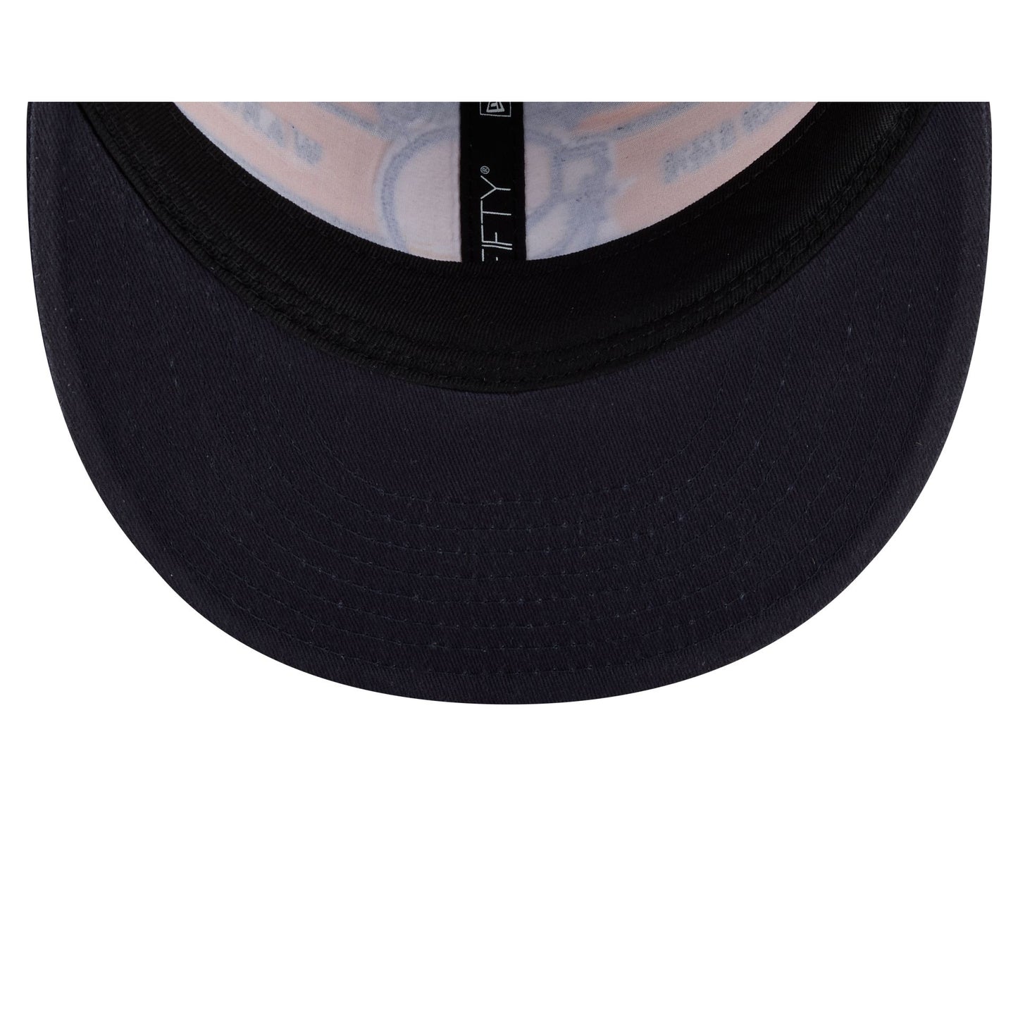 The Golden State Warriors Team Stripes Retro Crown 9FIFTY Snapback features an embroidered Warriors team stripe logo and wordmark at the front panels with an adjustable snapback closure at the rear.