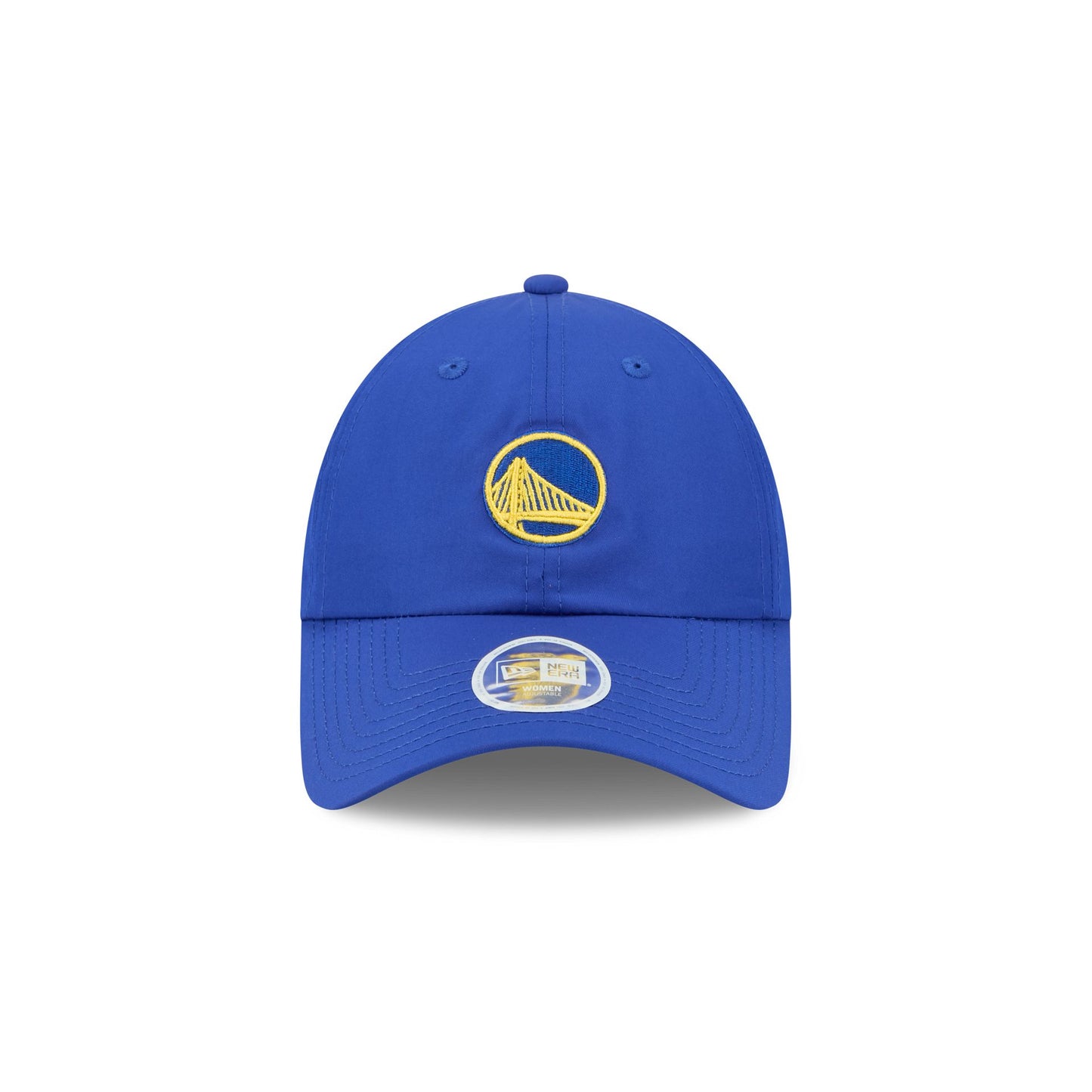 The Golden State Warriors Women's Open Back Ponytail Cap features an embroidered Warriors logo at the front panels with elastic straps and an open panel at the rear to accommodate any hairstyle.