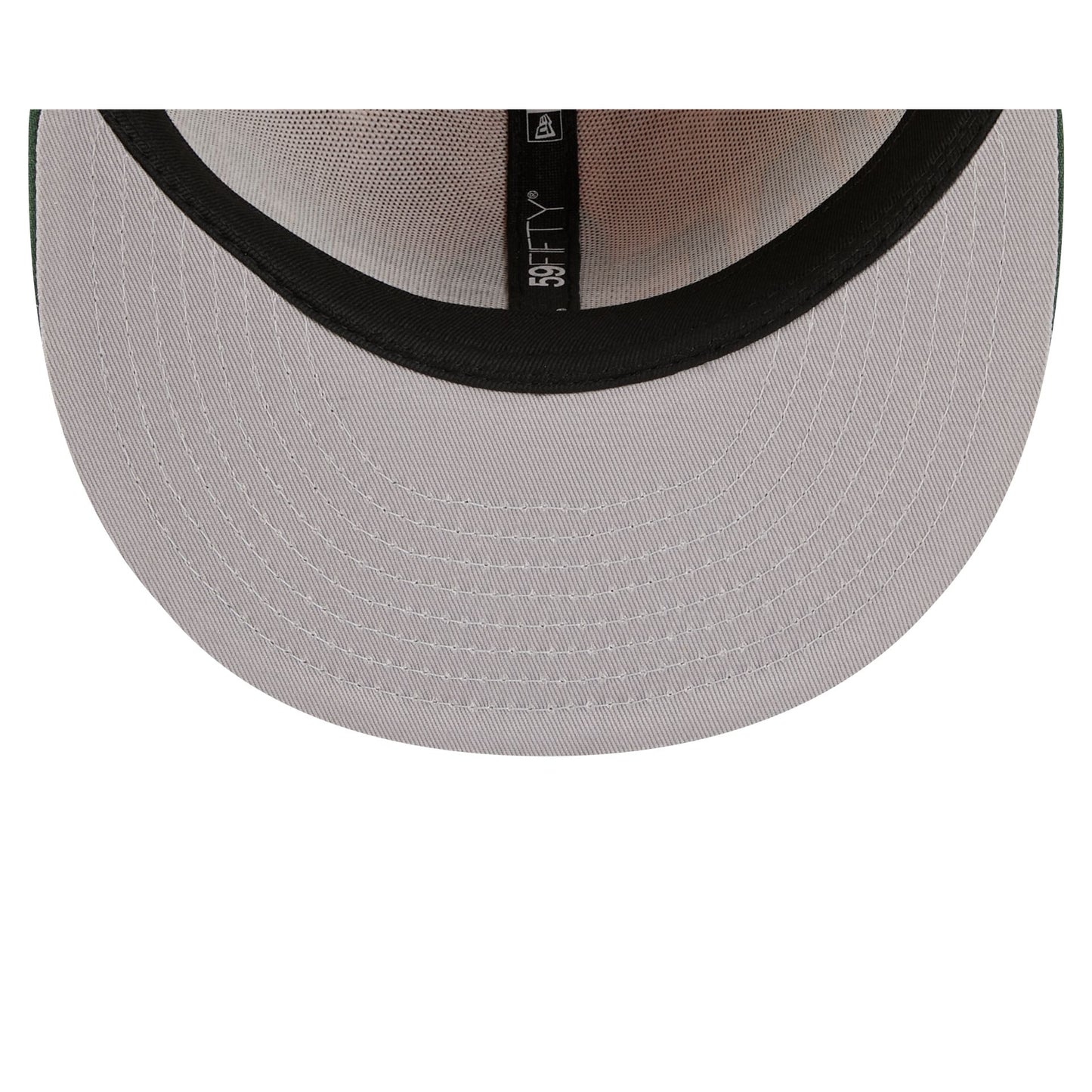 The Green Bay Packers Bold Satin 59FIFTY Fitted Cap features an embroidered satin Packers Historic graphic at the front panels with a satin fabrication throughout. Additional details include a matching NFL Shield logo at the rear and a gray undervisor.