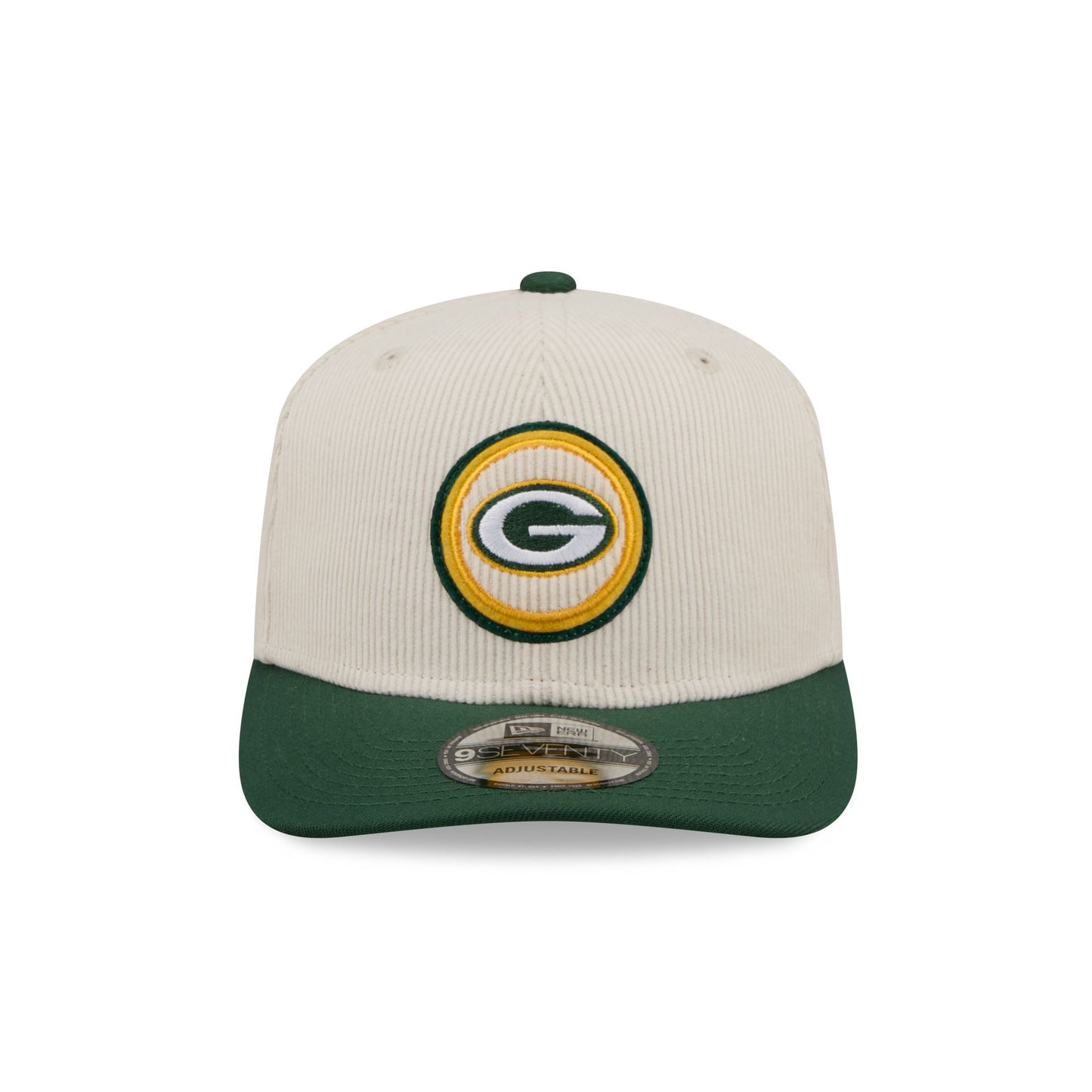 The Green Bay Packers Loyal Corduroy 9SEVENTY Stretch-Snap features an embroidered Packers logo at the front panels against a corduroy fabrication throughout the cap with an adjustable stretch-snap closure at the rear.