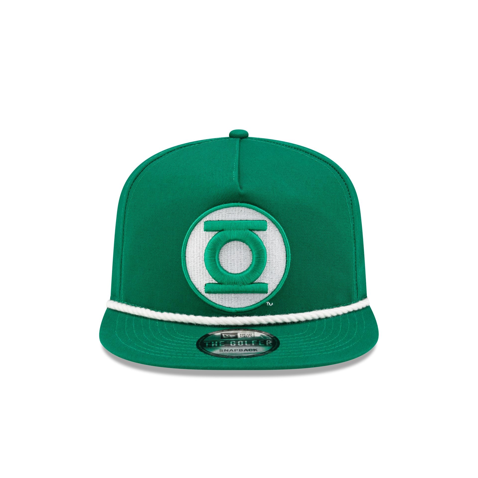 The Green Lantern Golfer Snapback features an embroidered Green Lantern logo at the front panels with the DC logo above a snapback closure at the rear and a white undervisor.