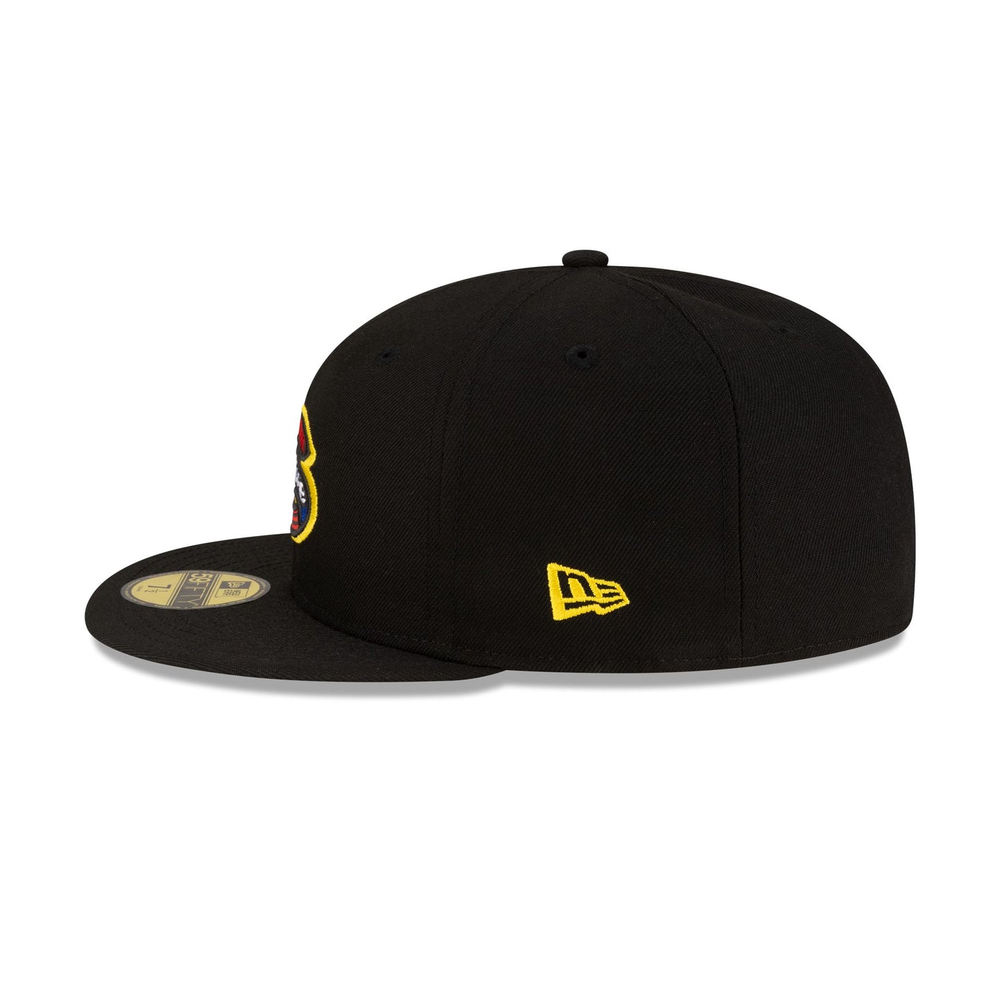 The Greenville Drive Racing Pack 59FIFTY Fitted Cap features an embroidered Drive racing themed logo at the front panels with a matching MiLB Batterman logo at the rear and gray undervisor.