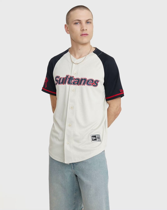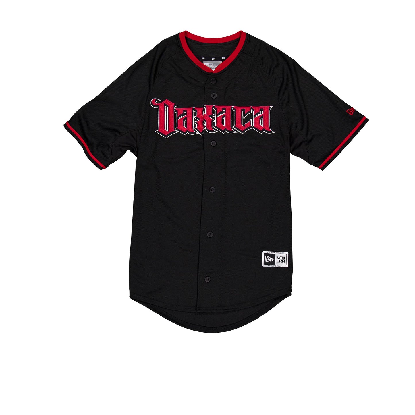 The Liga Mexicana de Beisbol is bringing fresh style. Look like a pro in our first-ever collection of jerseys and a range of matching 59FIFTY Fitted Caps. The Guerreros de Oaxaca Away Jersey features an embroidered Guerreros wordmark applique at the chest with a New Era Official Merchandise patch at the front, a Mexico flag at the right-wear sleeve, and a LMB logo at the rear.