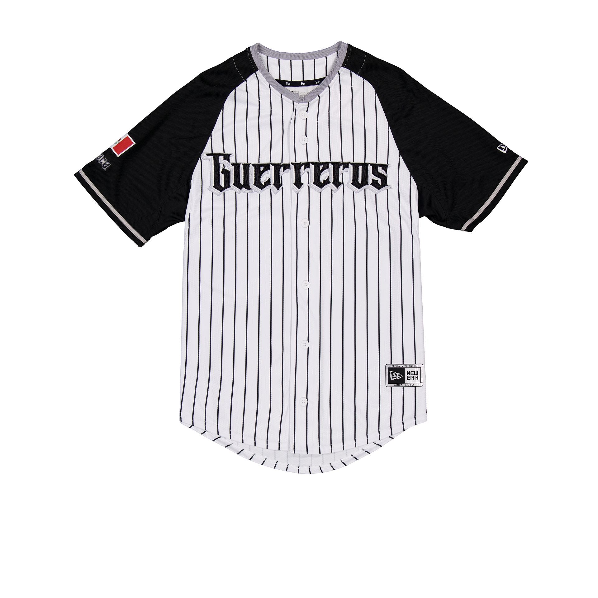 The Liga Mexicana de Beisbol is bringing fresh style. Look like a pro in our first-ever collection of jerseys and a range of matching 59FIFTY Fitted Caps. The Guerreros de Oaxaca Home Jersey features an embroidered Guerreros wordmark applique at the chest with a New Era Official Merchandise patch at the front, a Mexico flag above an alternate team wordmark at the right-wear sleeve, and a LMB logo at the rear.