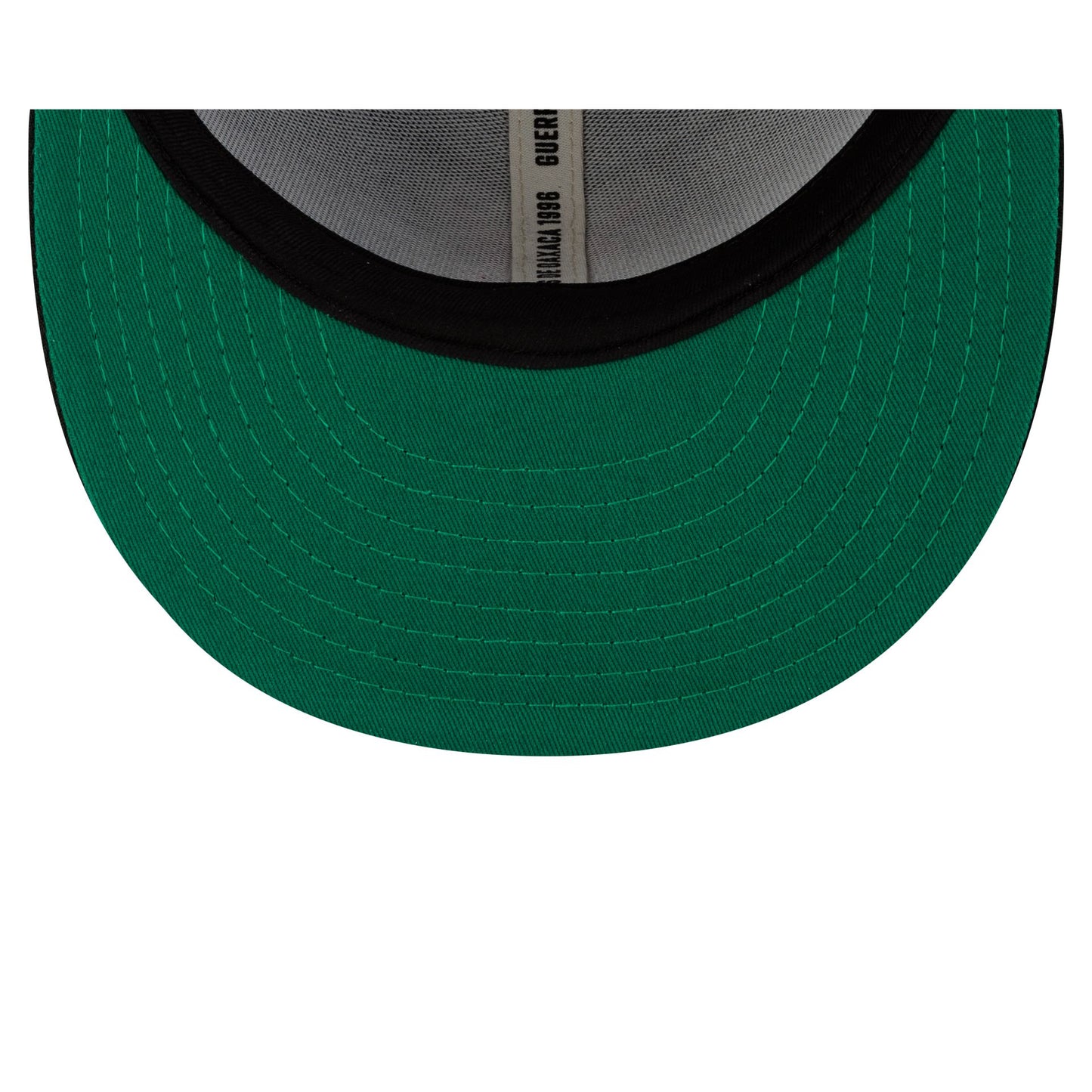 The Guerreros de Oaxaca Retro 59FIFTY Fitted Cap features an embroidered Guerreros retro logo at the front panels with a 100th Anniversary LMB logo at the rear and a green undervisor.