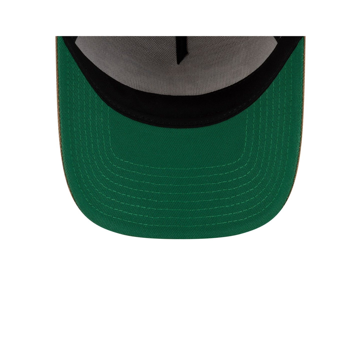 The Harry Potter Quidditch 9FORTY A-Frame Snapback features an embroidered Harry Potter Quidditch graphic at the front panels with a Harry Potter logo above a snapback closure at the rear and a green undervisor.