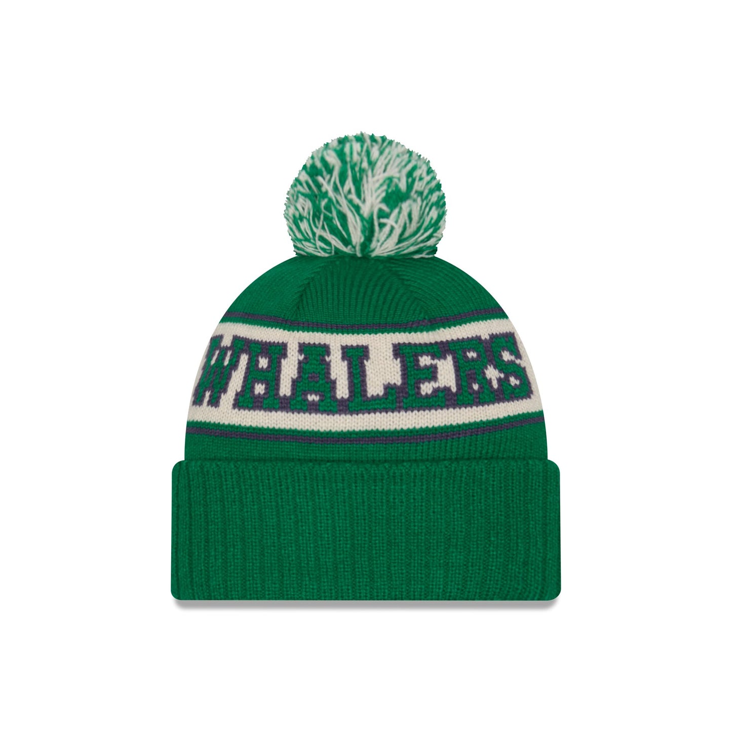 The Hartford Whalers Retro Pom Knit Hat features an embroidered Whalers logo at the front cuff with a team wordmark at the crown and a one-time removable pom.