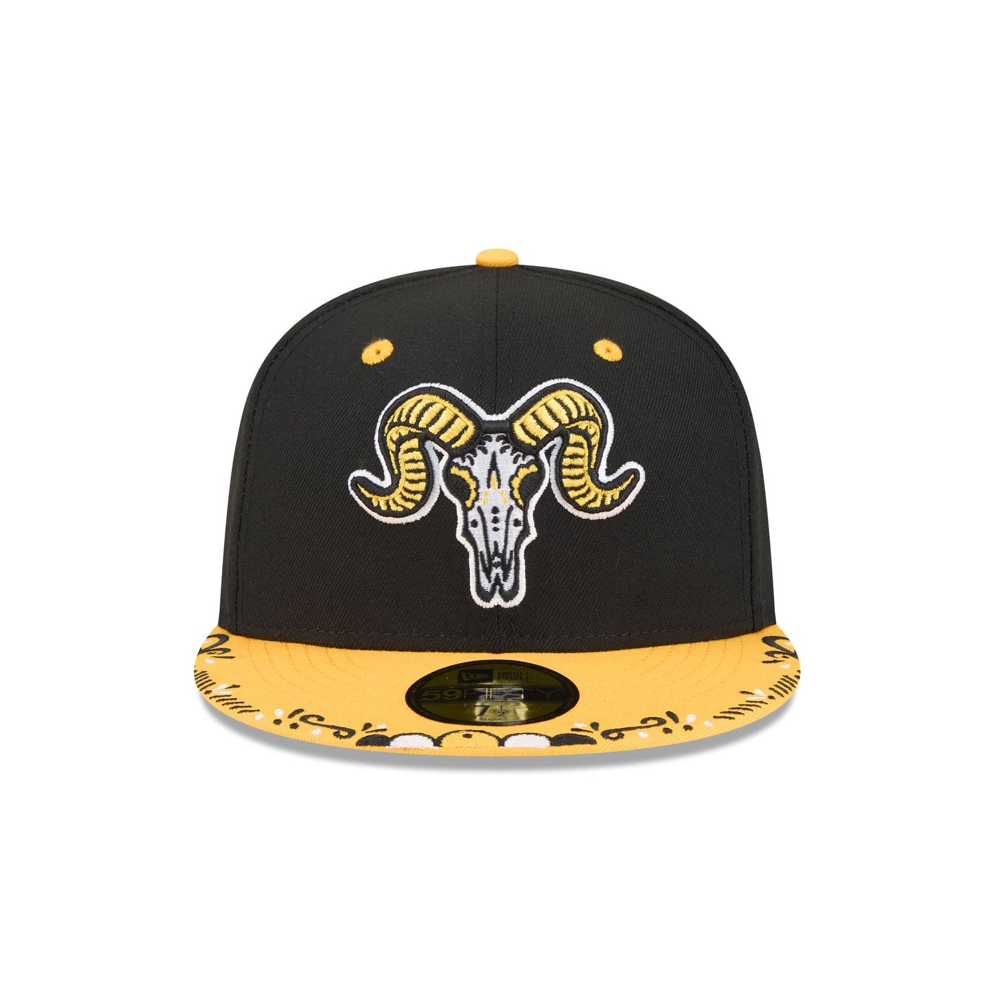 The Hartford Yard Goats 2026 Copa de la Diversión Alt 59FIFTY Fitted Cap features an embroidered Yard Goats Alt logo at the front panels with a matching MiLB Batterman logo at the rear, a decorative embroidery at the visor, and a gray undervisor.