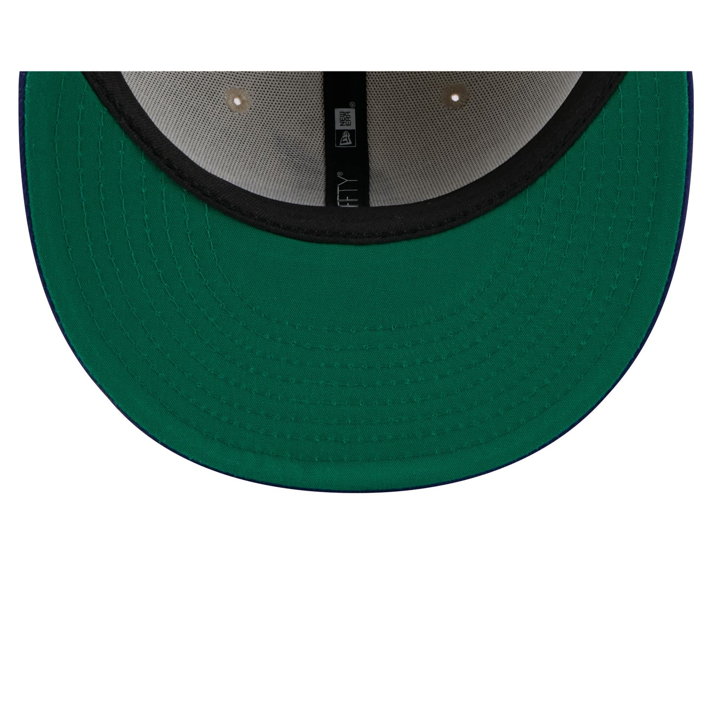 The Hartford Yard Goats Sandy Linen 59FIFTY Fitted Cap features an embroidered Yard Goats logo at the front panels with a matching MiLB Batterman logo at the rear and a green undervisor.