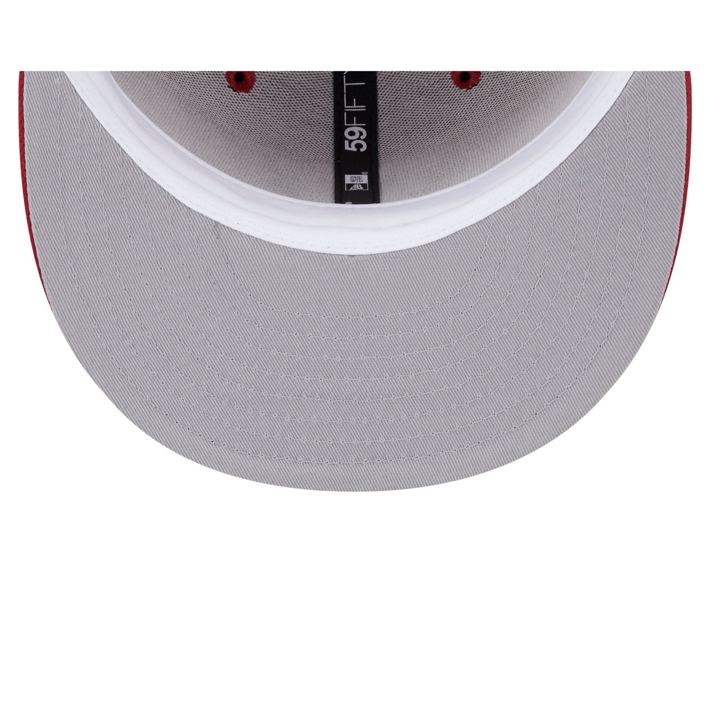 The Harvard Crimson Go-To 59FIFTY Fitted Cap features an embroidered Crimson logo at the front panels with a matching team wordmark at the rear and a gray undervisor.