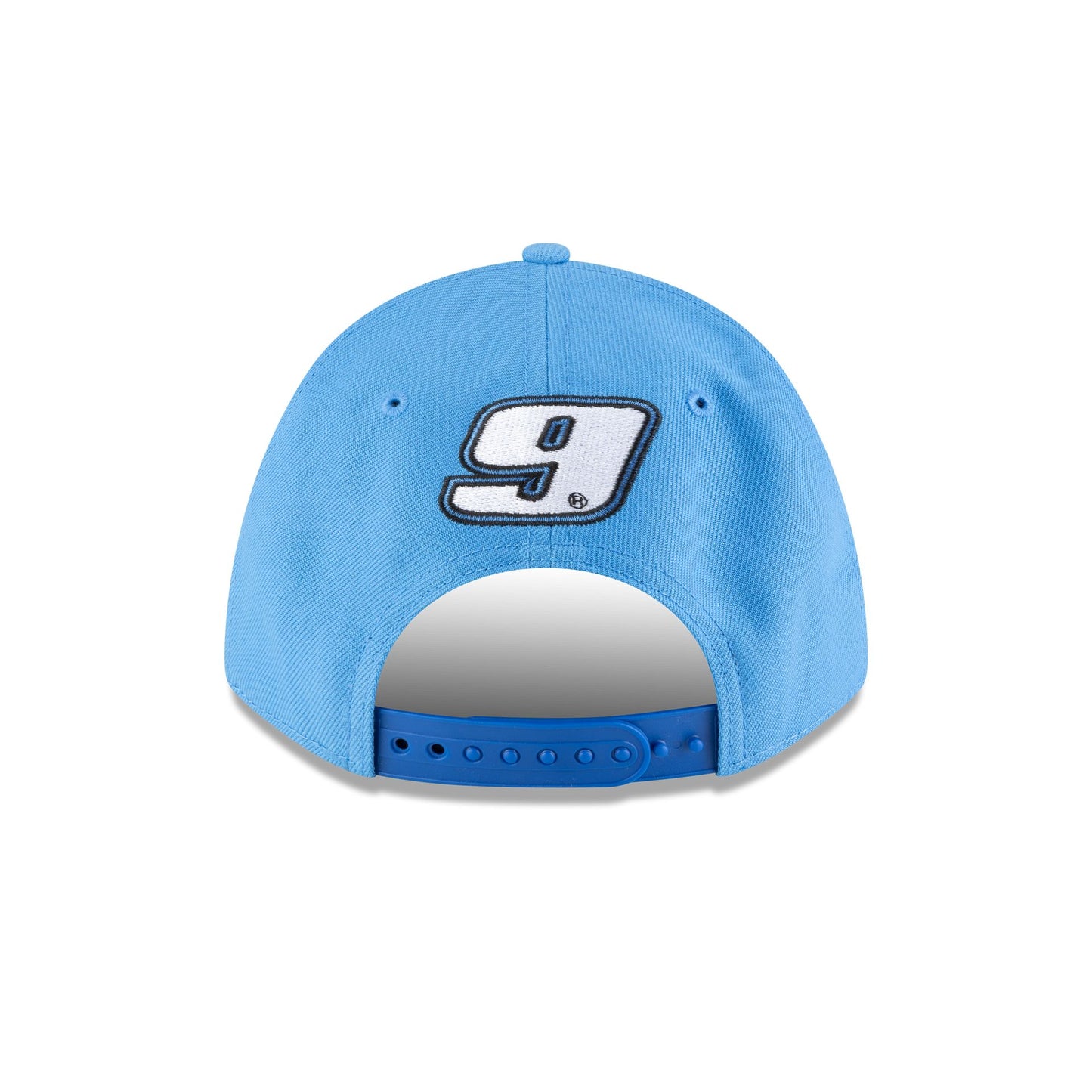 The Hendrick Motorsports Chase Elliott Prime Partner 9FORTY M-Crown Snapback features an embroidered Prime logo at the front panels with the driver's number above an adjustable snapback closure at the rear and a gray undervisor.