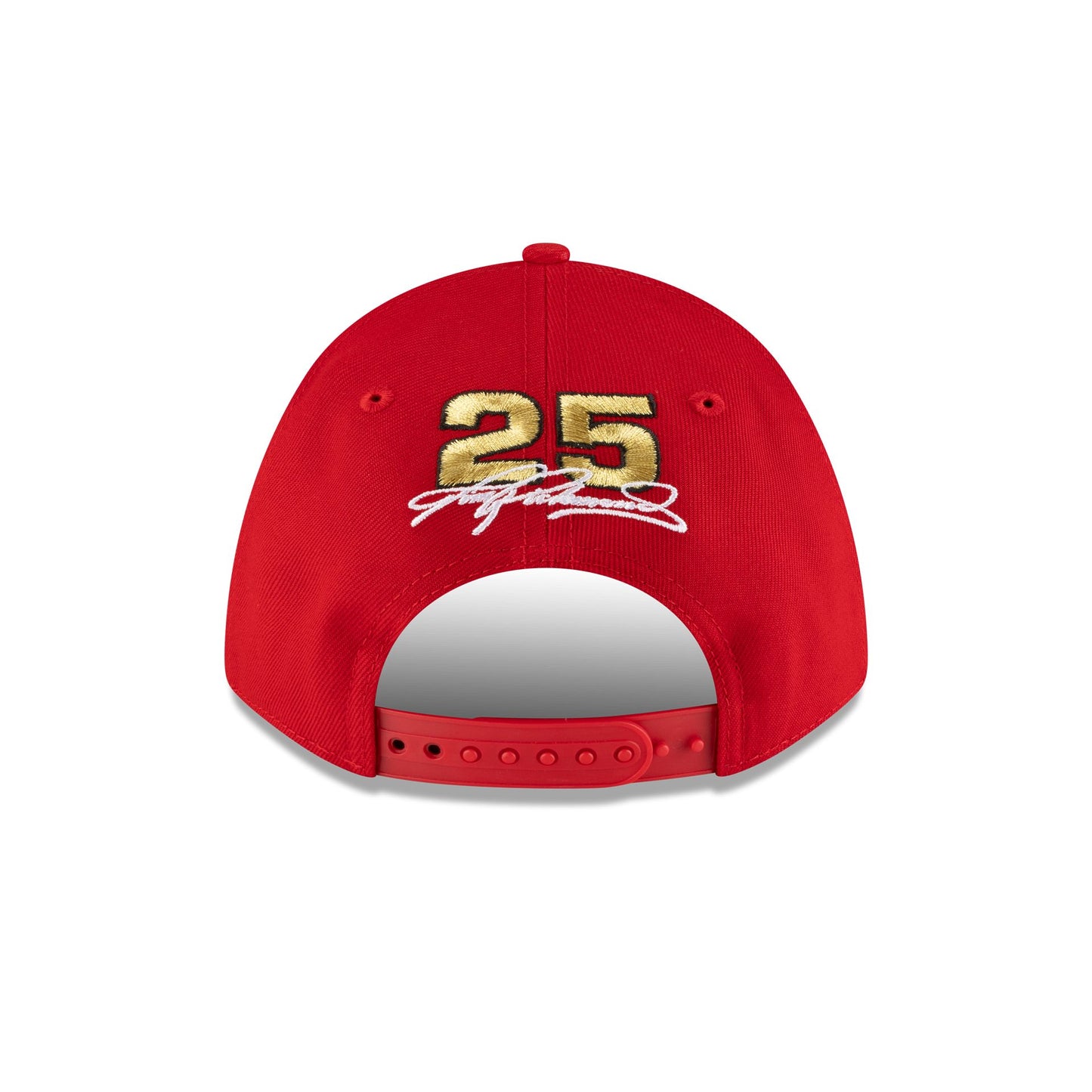 The Hendrick Motorsports Tim Richmond Folgers Partner 9FORTY M-Crown Snapback features an embroidered Folgers logo at the front panels with the driver's number above an adjustable snapback closure at the rear and a gray undervisor.