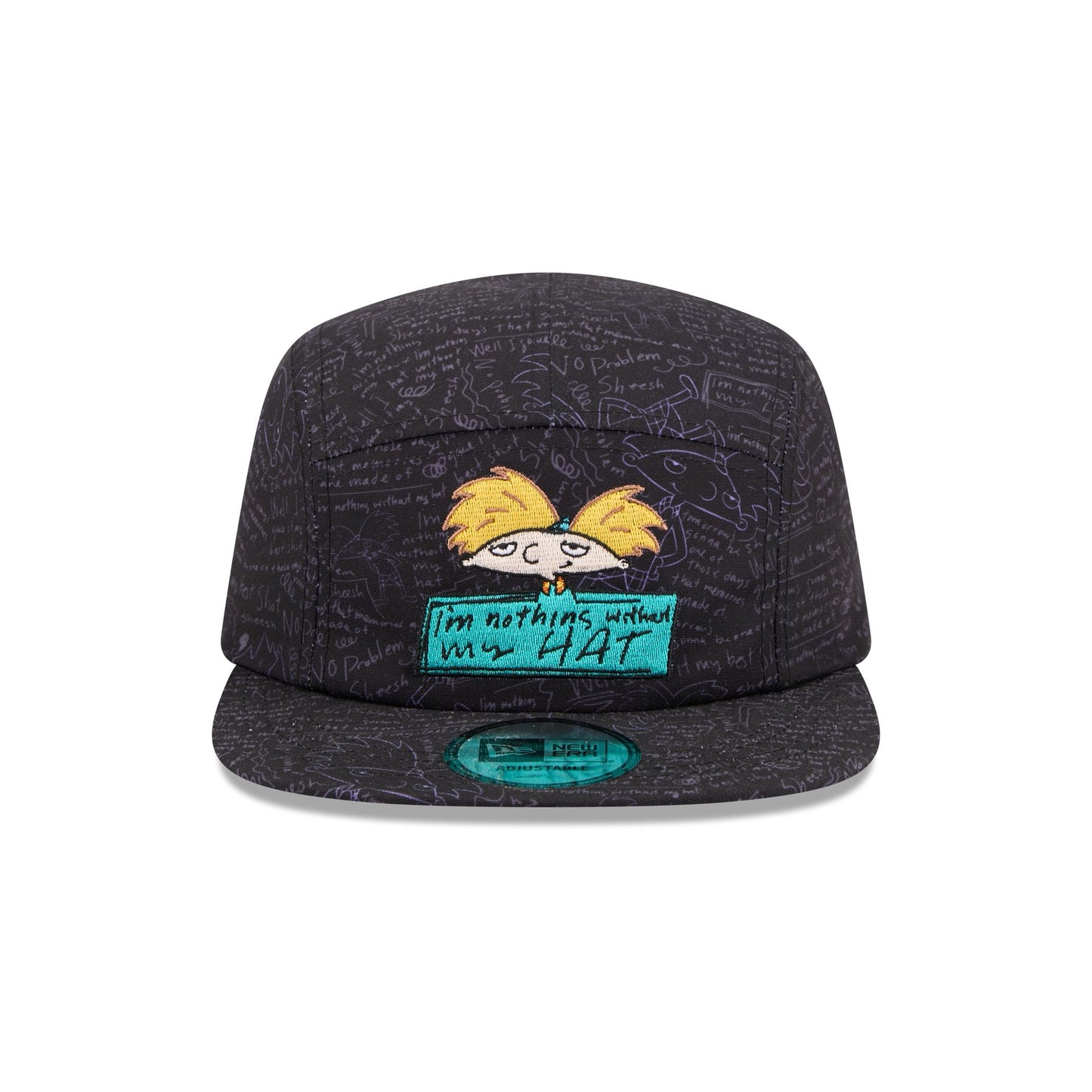 The Hey Arnold! I'm Nothing Without My Hat Camper Adjustable Cap features an embroidered Hey Arnold! I'm Nothing Without My Hat character patch at the front panels with an adjustable strapback closure at the rear. Additional details include an allover print fabrication featuring quotes from the show and sketches of Arnold with a teal undervisor.