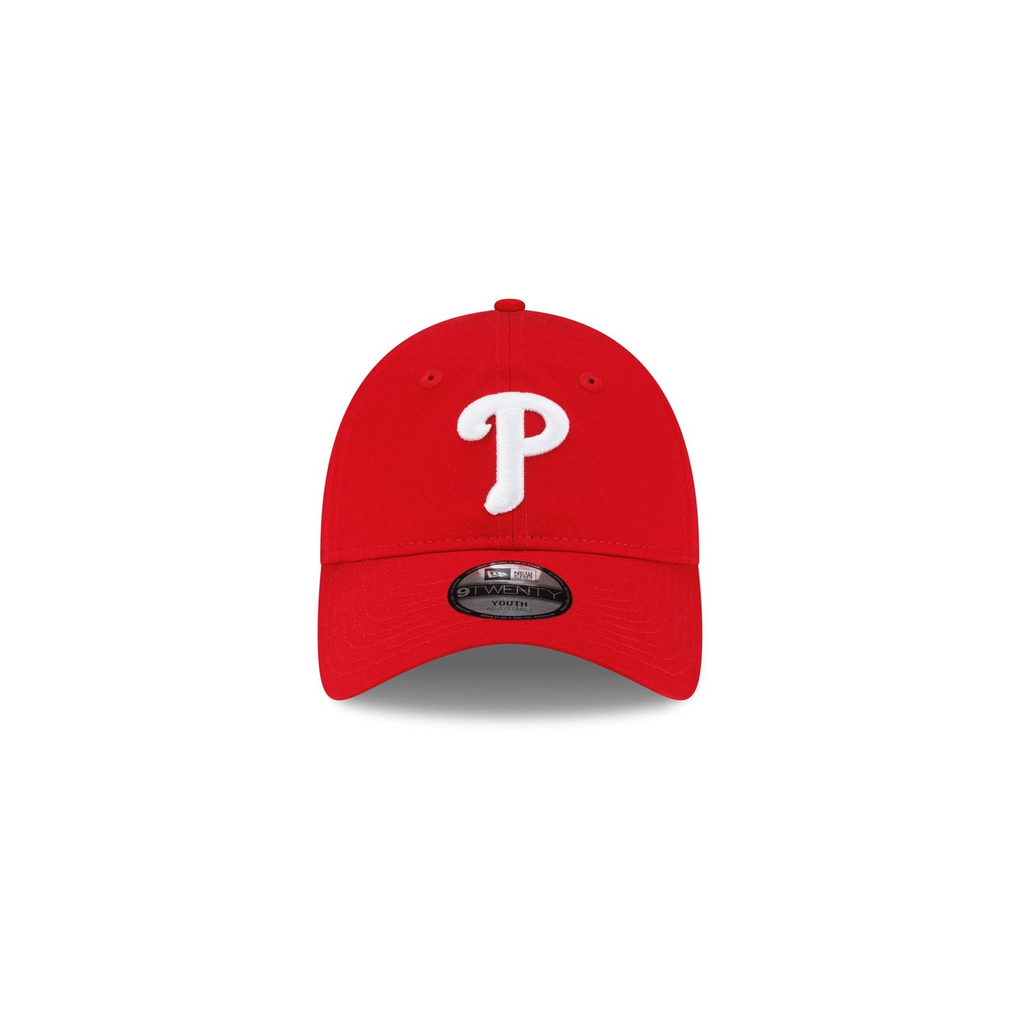 The Hidden Pigeon x Philadelphia Phillies Youth 9TWENTY Adjustable Cap features an embroidered Phillies logo at the front panels with an Elephant & Piggie patch at the right-wear side, an adjustable D-Ring closure at the rear, and a gray undervisor.