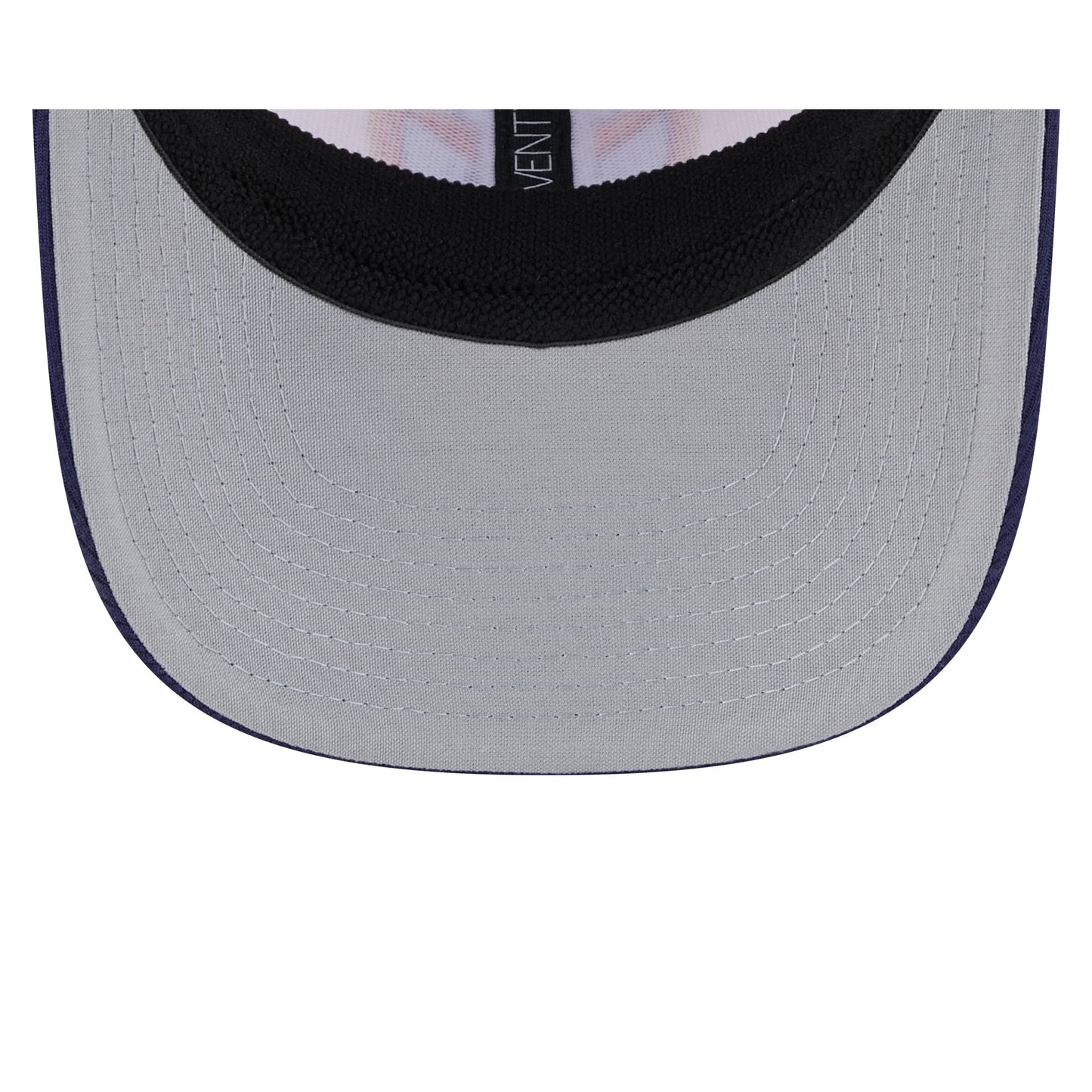 The Houston Astros 2025 Batting Practice 9SEVENTY Trucker Hat features an embroidered Astros logo at the front panels with a mesh back, a snapback closure at the rear, and a gray undervisor.