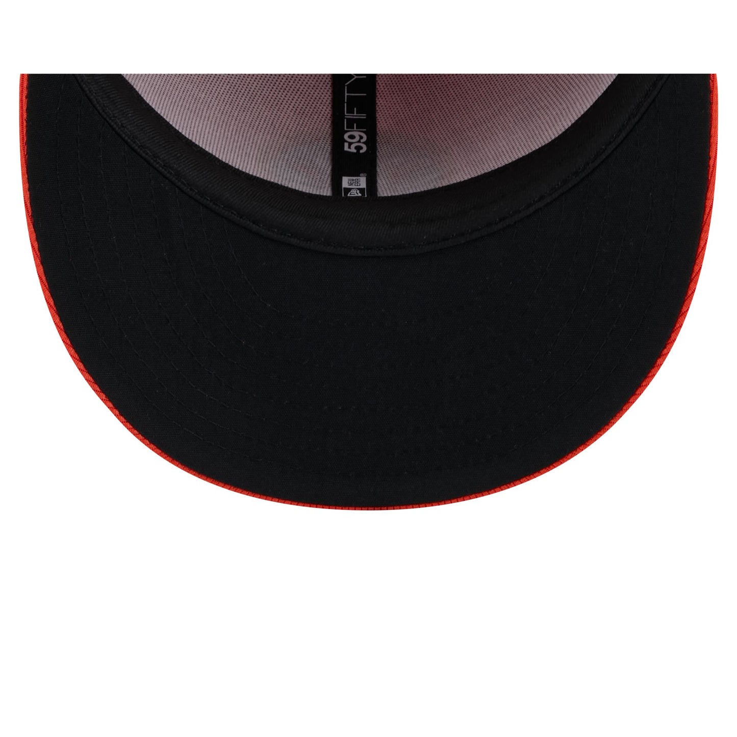 The Houston Astros 2025 Spring Training Low Profile 59FIFTY Fitted Cap features an embroidered Astros logo at the front panels with a matching MLB Batterman logo at the rear. Additional details include a pivot knit fabrication with a 2025 Spring Training patch at the right-wear side and a black undervisor.