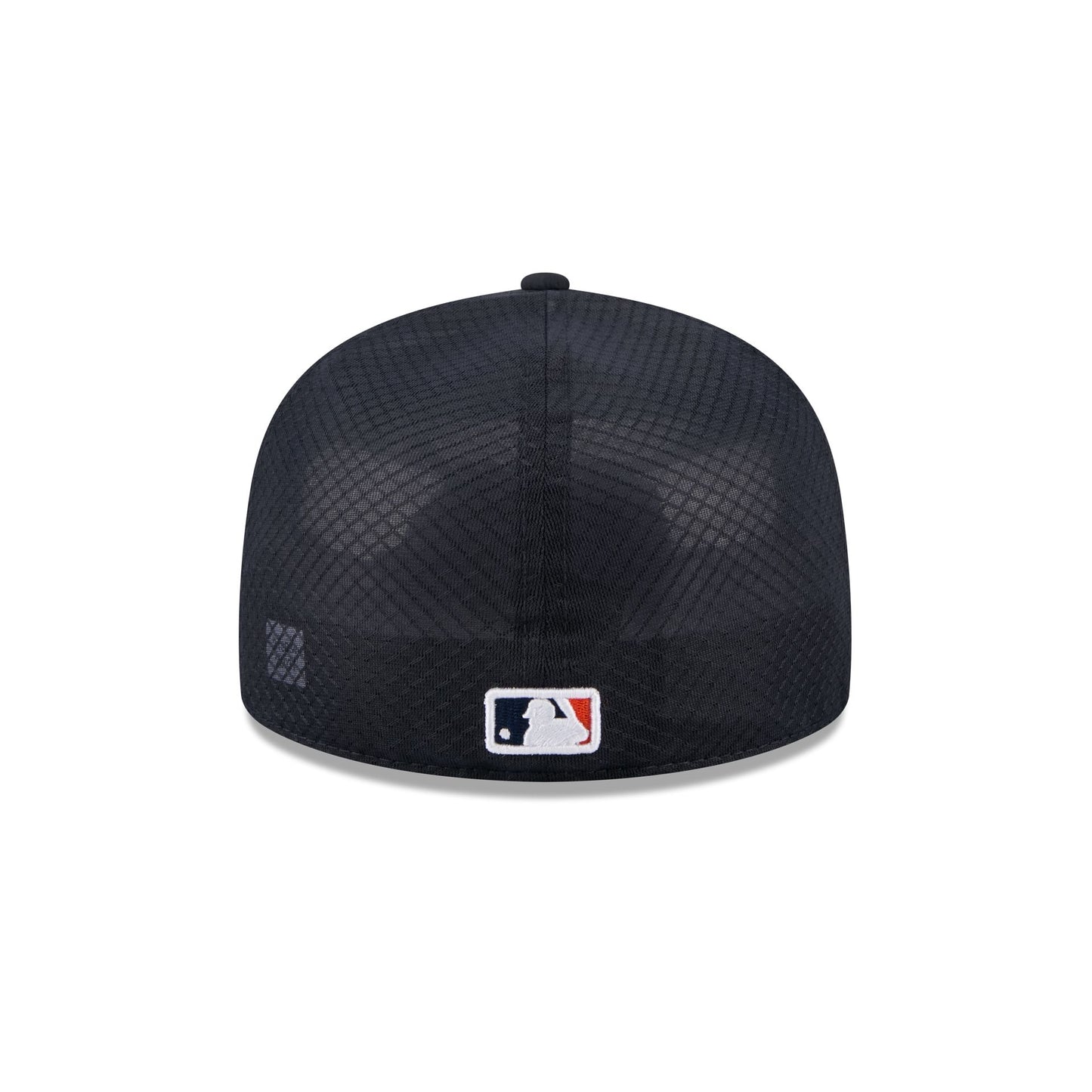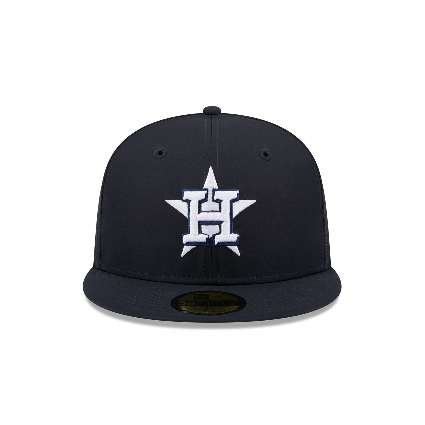 The Houston Astros 2026 Batting Practice Fan Pack 59FIFTY Fitted Cap features an embroidered Astros logo at the front panels with the MLB Batterman logo at a diamond mesh rear.