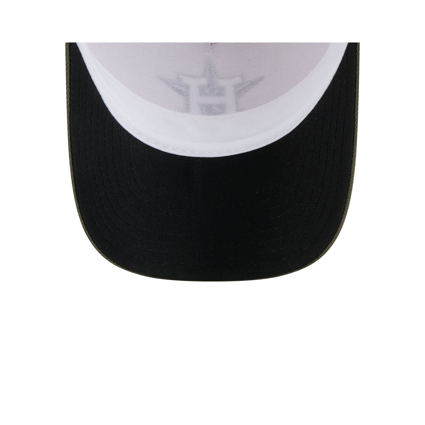 The Houston Astros Armed Forces Day 2025 9FORTY M-Crown A-Frame Trucker features an embroidered Astros logo at the front panels with the American Flag embroidered at the right-wear side. Additional details include an MLB Batterman logo above a snapback closure at a mesh rear and a black undervisor.