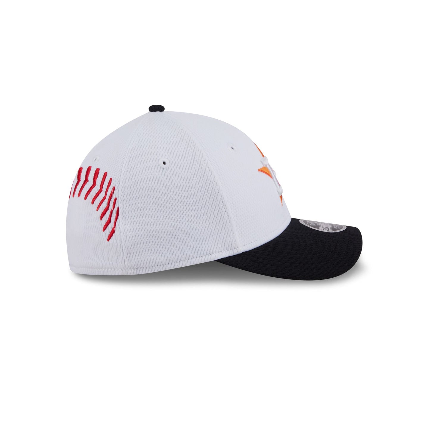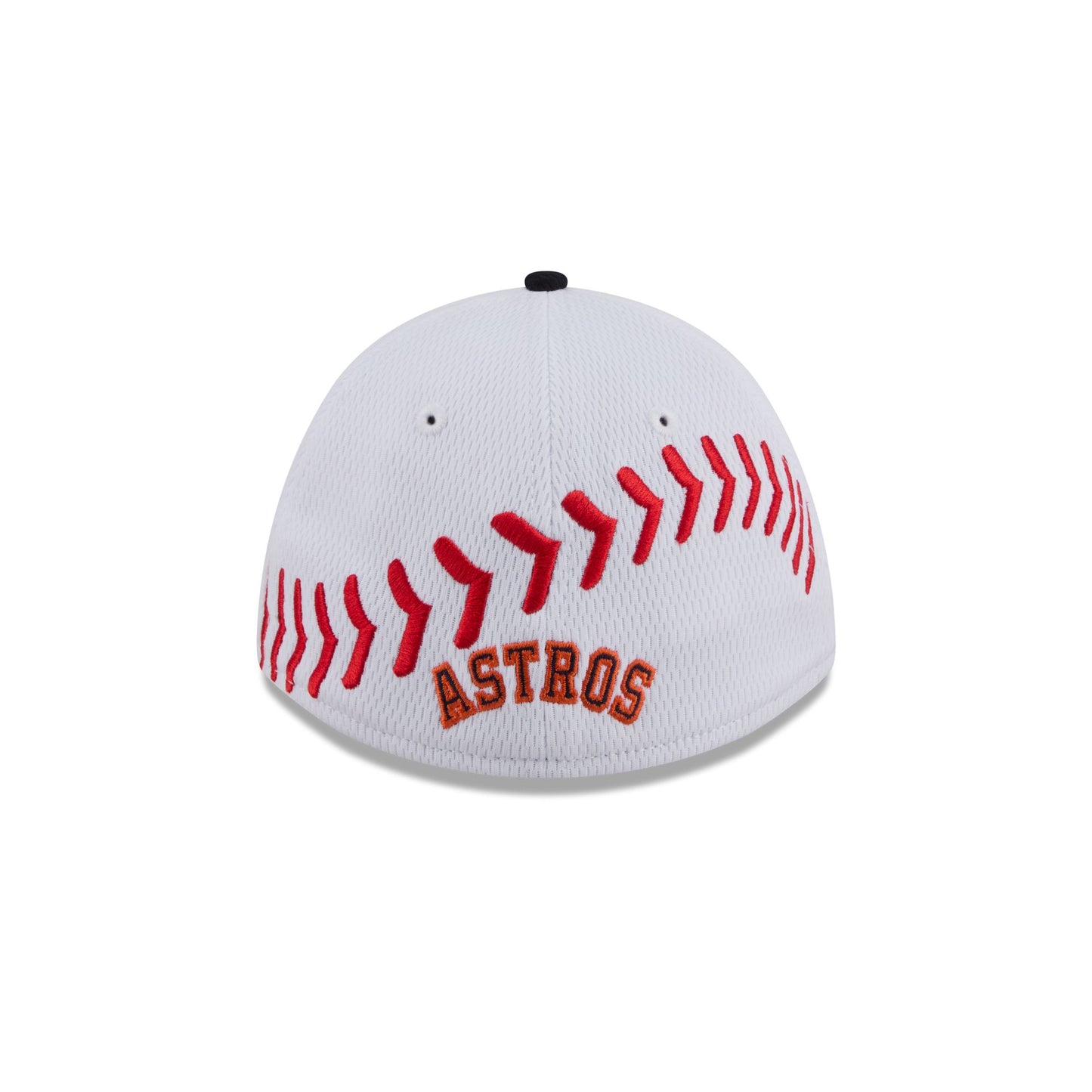 The Houston Astros Baseball Stitch Kids 39THIRTY M-Crown Stretch Fit features an embroidered Astros logo at the front panels with a jersey fabrication throughout. Additional details include an embroidered wordmark and baseball stitching at the rear.