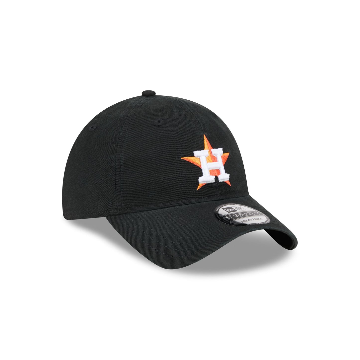 The Houston Astros Black 9TWENTY Adjustable Cap features an embroidered Astros logo at the front panels with a matching woven team logo tag at the adjustable D-Ring closure at the rear.