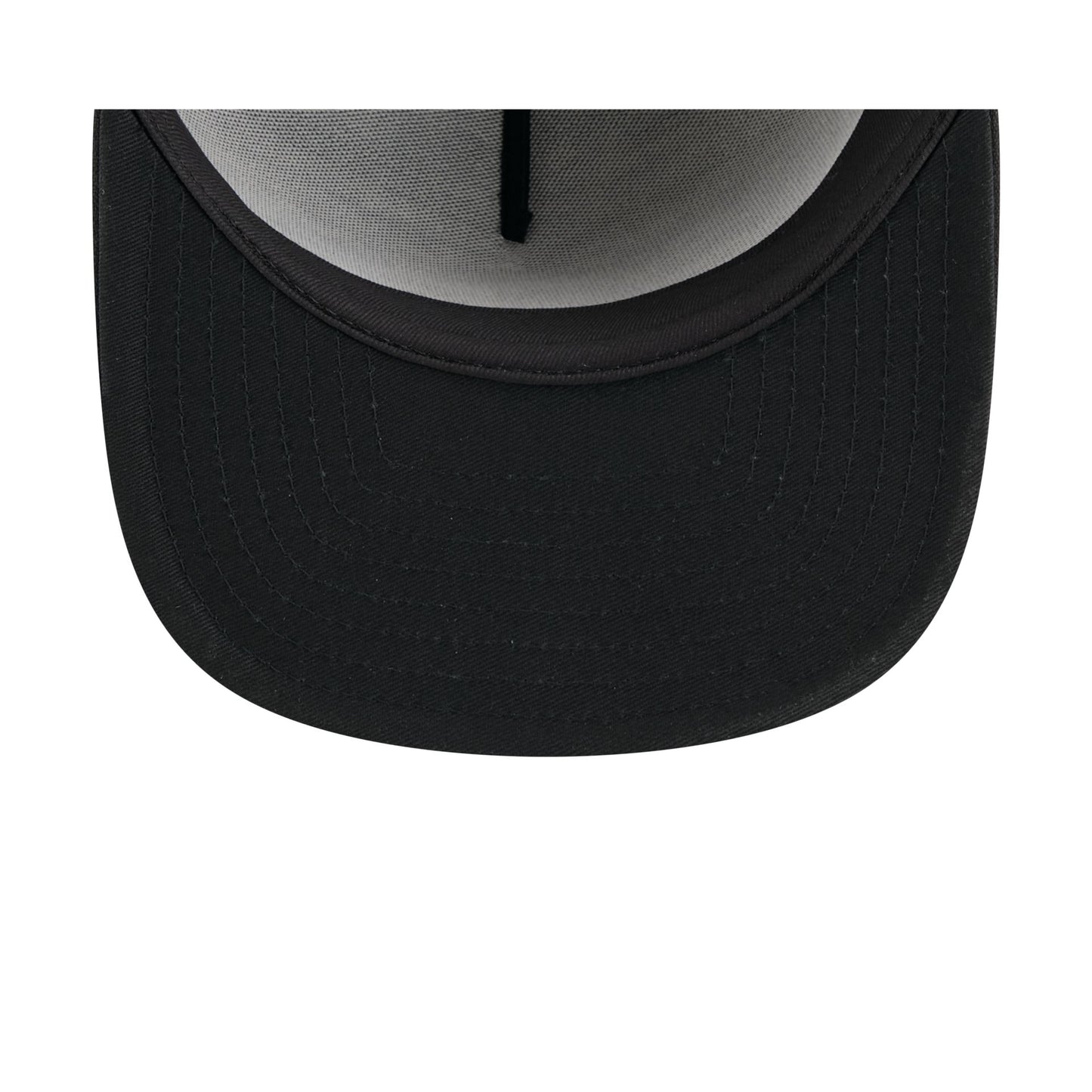 The Houston Astros Black Mesh 59FIFTY A-Frame Fitted Cap features an embroidered Astros logo at the front panels with a matching MLB Batterman logo at a patterned mesh rear.