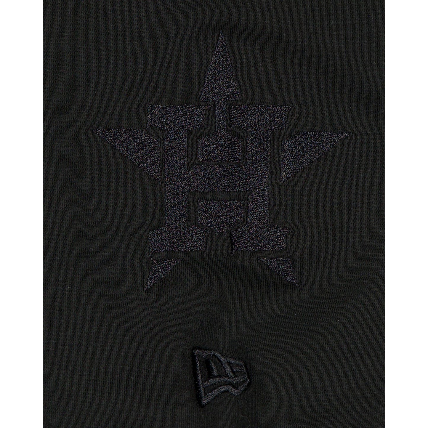 The Houston Astros Black on Black Logo Select Hoodie features a satin applique with a tonal stitch Astros wordmark at the chest and an embroidered team logo at the left-wear sleeve.