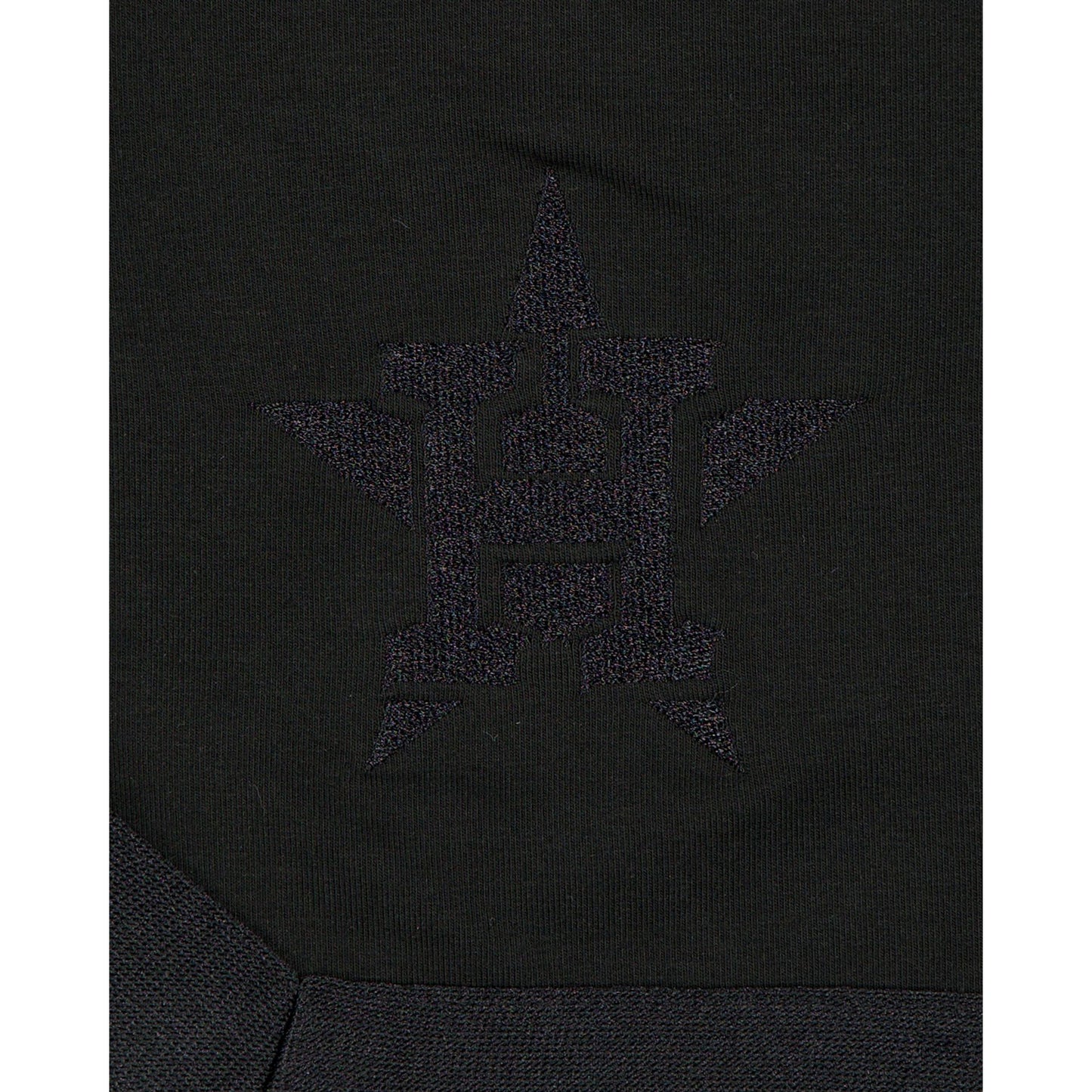 The Houston Astros Black on Black Logo Select Shorts features an embroidered Astros logo at the right-wear leg and a satin applique with a tonal stitch team wordmark at the rear left leg.