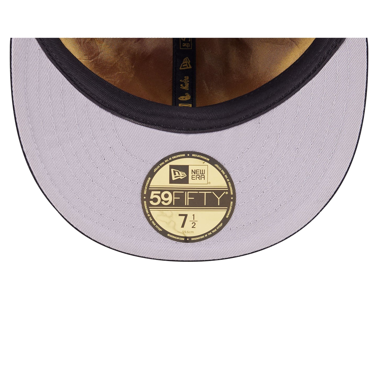 The Houston Astros Black Velvet 59FIFTY Fitted Cap features an embroidered Astros wordmark at the front panels against a velvet fabrication throughout. Additional details include a metal plate hand stitched at the rear and a gray undervisor.