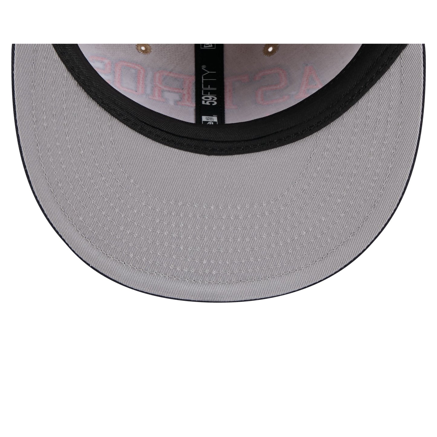 The Houston Astros Camel Retro Crown 59FIFTY Fitted Cap features an embroidered Astros Cooperstown wordmark, logo, and league patch at the front panels. Additional details include an MLB Batterman logo at the rear and a gray undervisor.