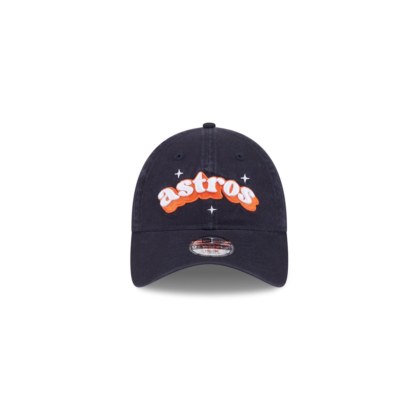 The Houston Astros Cheer Kids 9TWENTY Adjustable Cap features an embroidered Houston Astros sparkle wordmark at the front panels. Additional details include a logo at the right-wear side and an adjustable D-Ring closure at the rear and a gray undervisor.