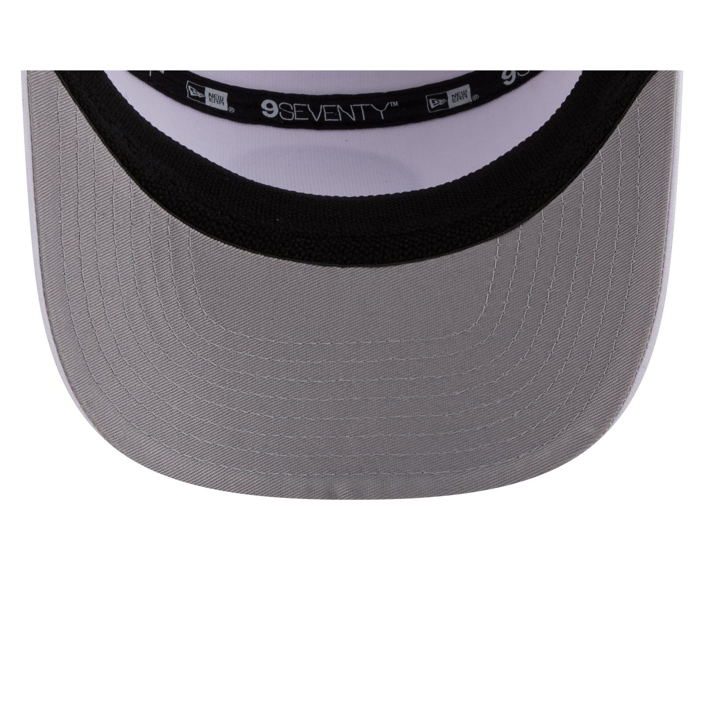 The Houston Astros Circle Logo White Split Panel 9SEVENTY Stretch-Snap features a woven silicone Astros circle logo at the front panel with a split crown construction and light-weight fabrication. Additional details include an adjustable stretch-snap closure at the rear and a gray undervisor.