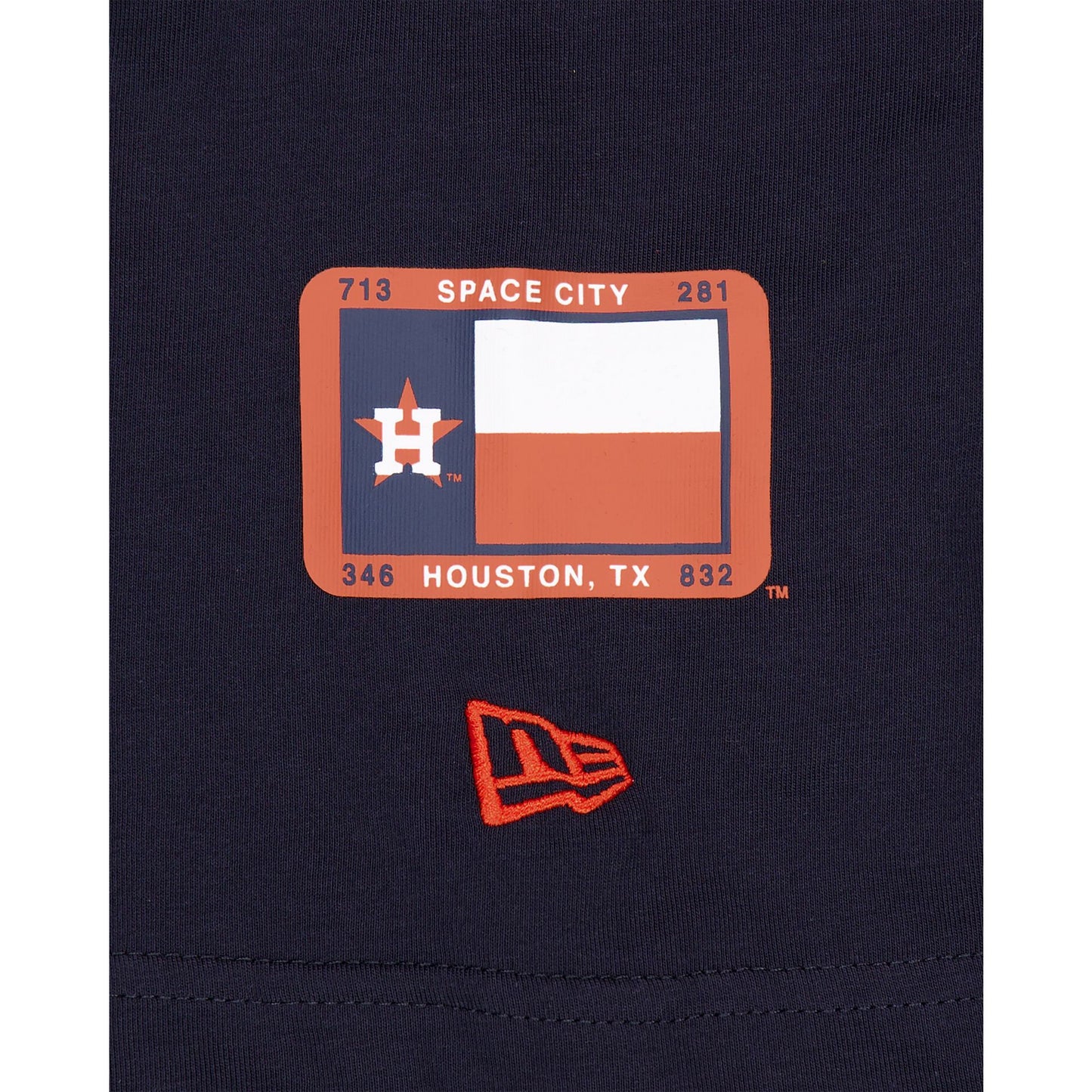 Jersey inspired, city connected. The Houston Astros City Connect Navy T-Shirt features a screen-printed Astros wordmark and logo at the front with an alternate team logo at the left-wear sleeve.