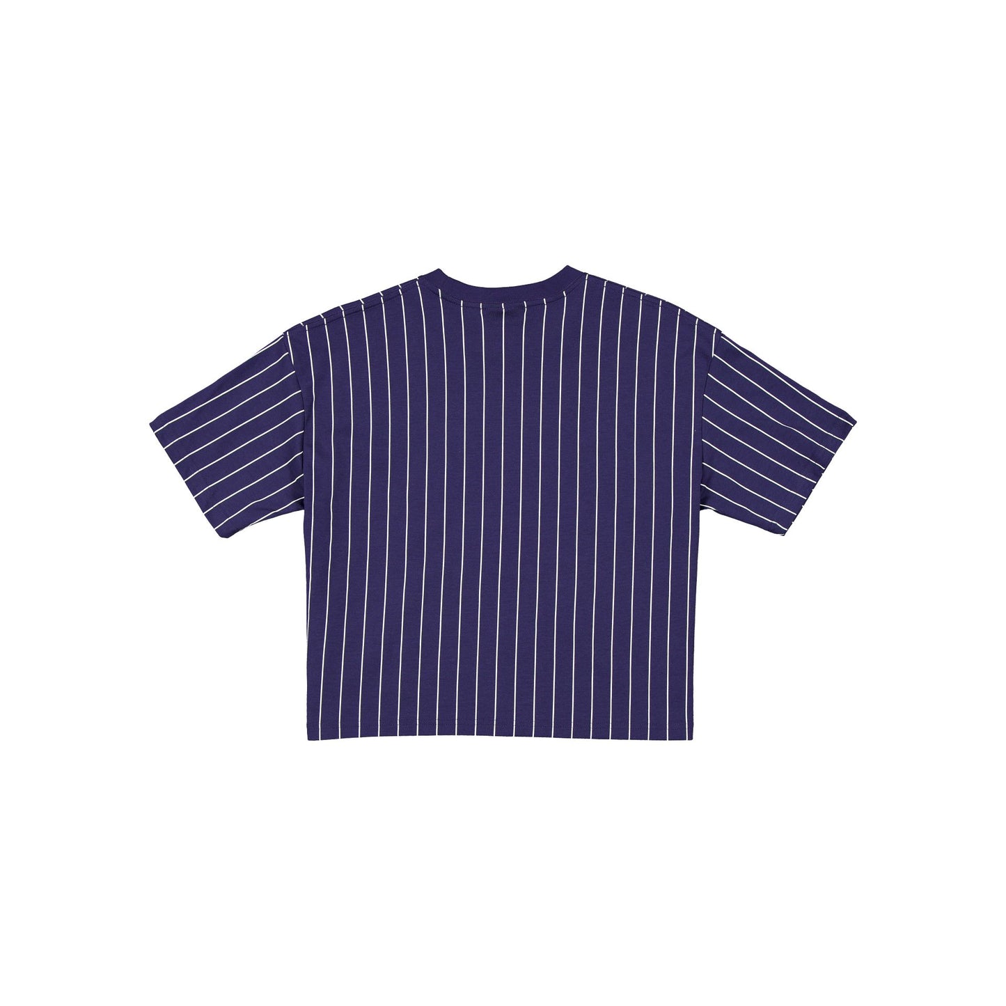 The Houston Astros City Connect Women's Pinstripe T-Shirt features a screen-printed Astros wordmark and logo at the front with a New Era jock tag at the left hip.