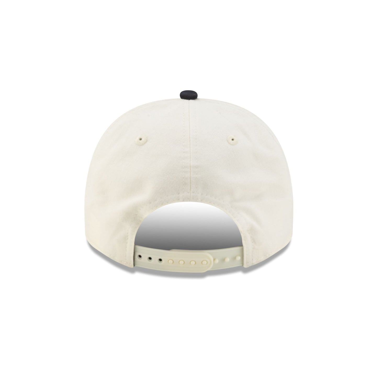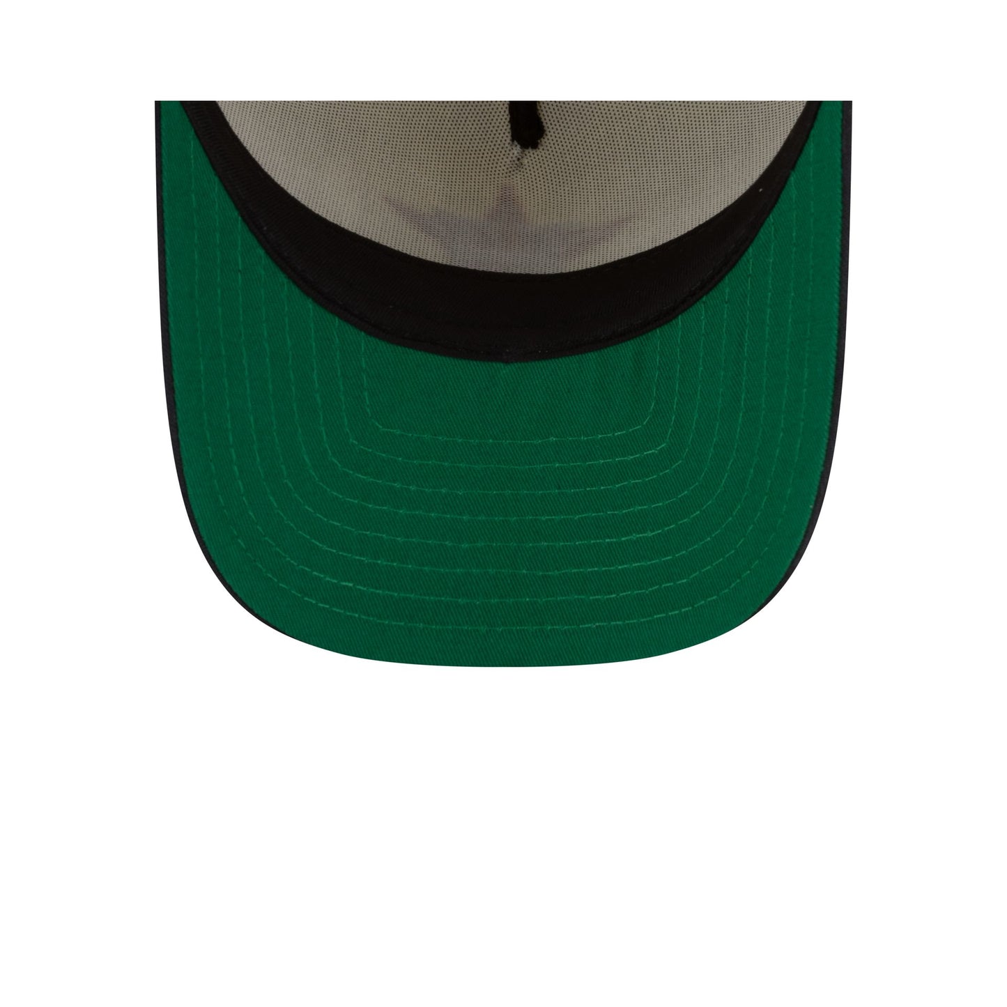 The Houston Astros Cotton Brush Chrome Pre-Curve 9FIFTY A-Frame Snapback features an embroidered Astros logo at the front panel with an adjustable snapback closure at the rear. Additional details include a team wordmark at the right-wear side with a matching team color visor and a green undervisor.