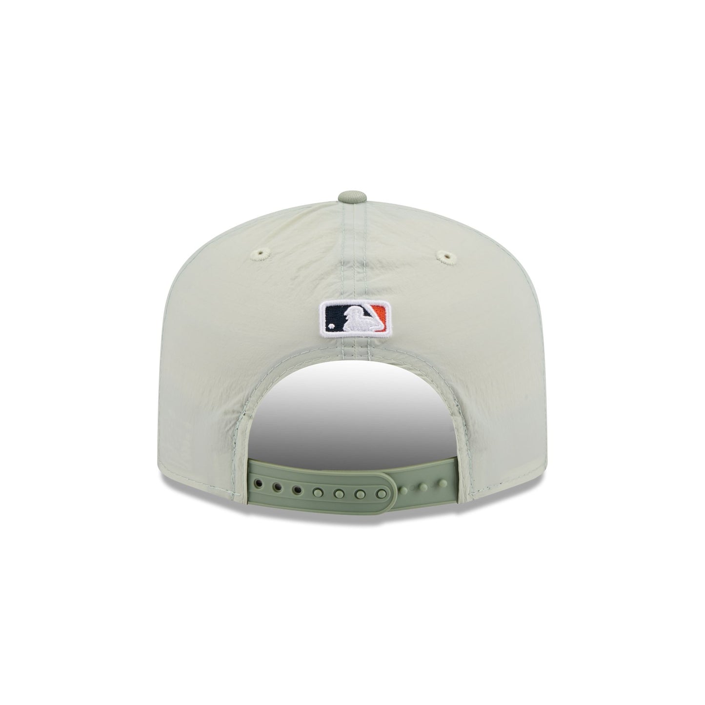 The Houston Astros Crinkle 19TWENTY Adjustable Cap features an embroidered Astros logo at the front panels with a nylon fabrication throughout. Additional details include the MLB Batterman logo above an adjustable snapback closure at the rear and a green undervisor.