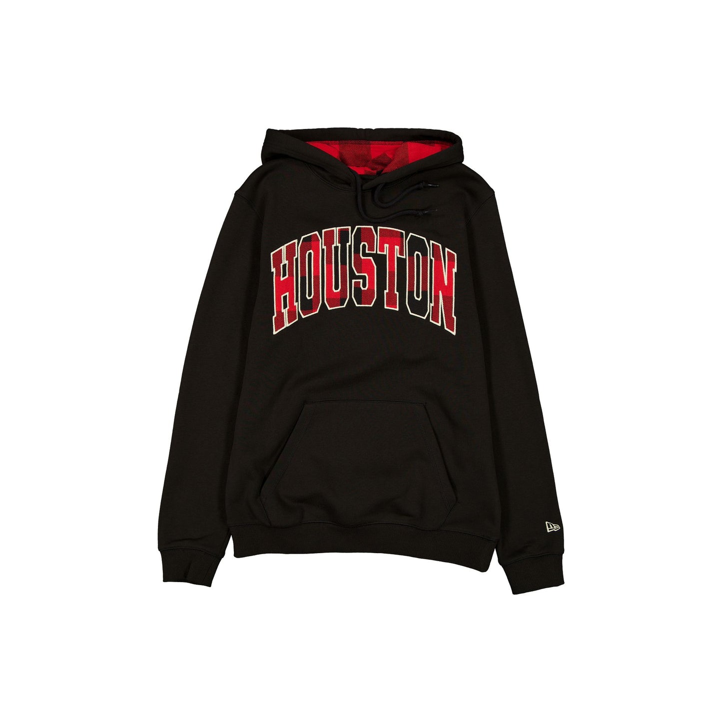 The Houston Astros Evergreen Check Hoodie features an embroidered applique Astros checkered wordmark at the front with a matching interior hood and logo at the rear. Additional details include kangaroo pockets and adjustable drawstrings at the hood.