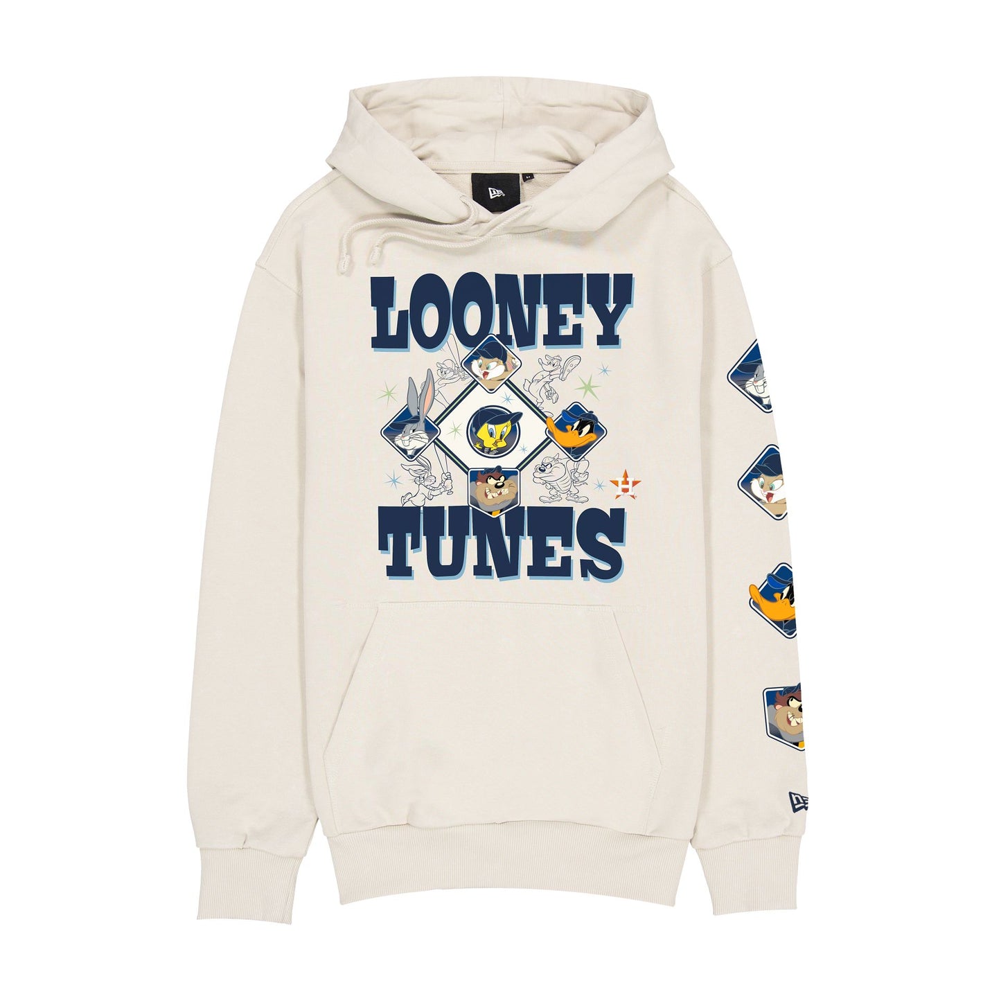The Houston Astros Looney Tunes Diamond Chrome White Hoodie features a screen-printed Astros Looney Tunes diamond graphic at the front with kangaroo pockets and adjustable drawstrings at the hood.