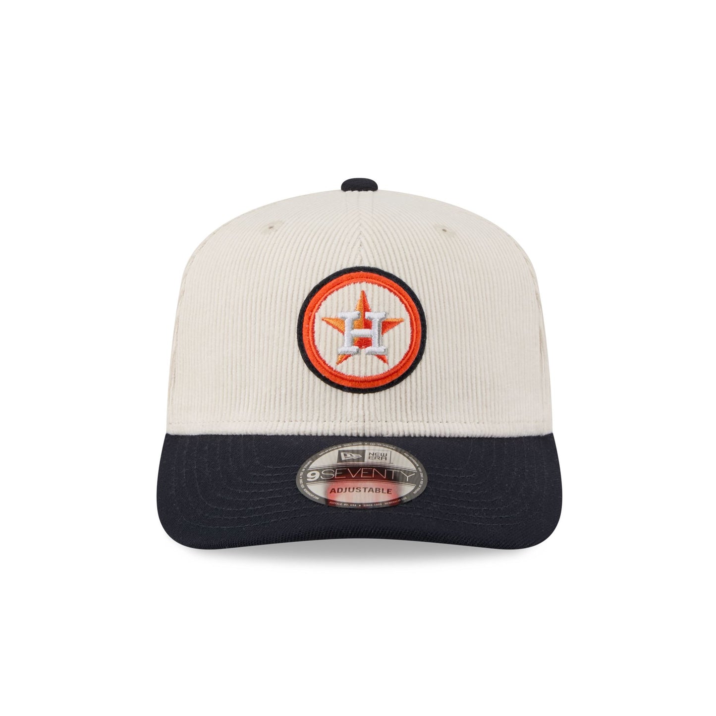 The Houston Astros Loyal Corduroy 9SEVENTY Stretch-Snap features an embroidered Astros logo at the front panels against a corduroy fabrication throughout the cap. Additional details include an alternate logo at the right-wear side with an adjustable stretch-snap closure at the rear.