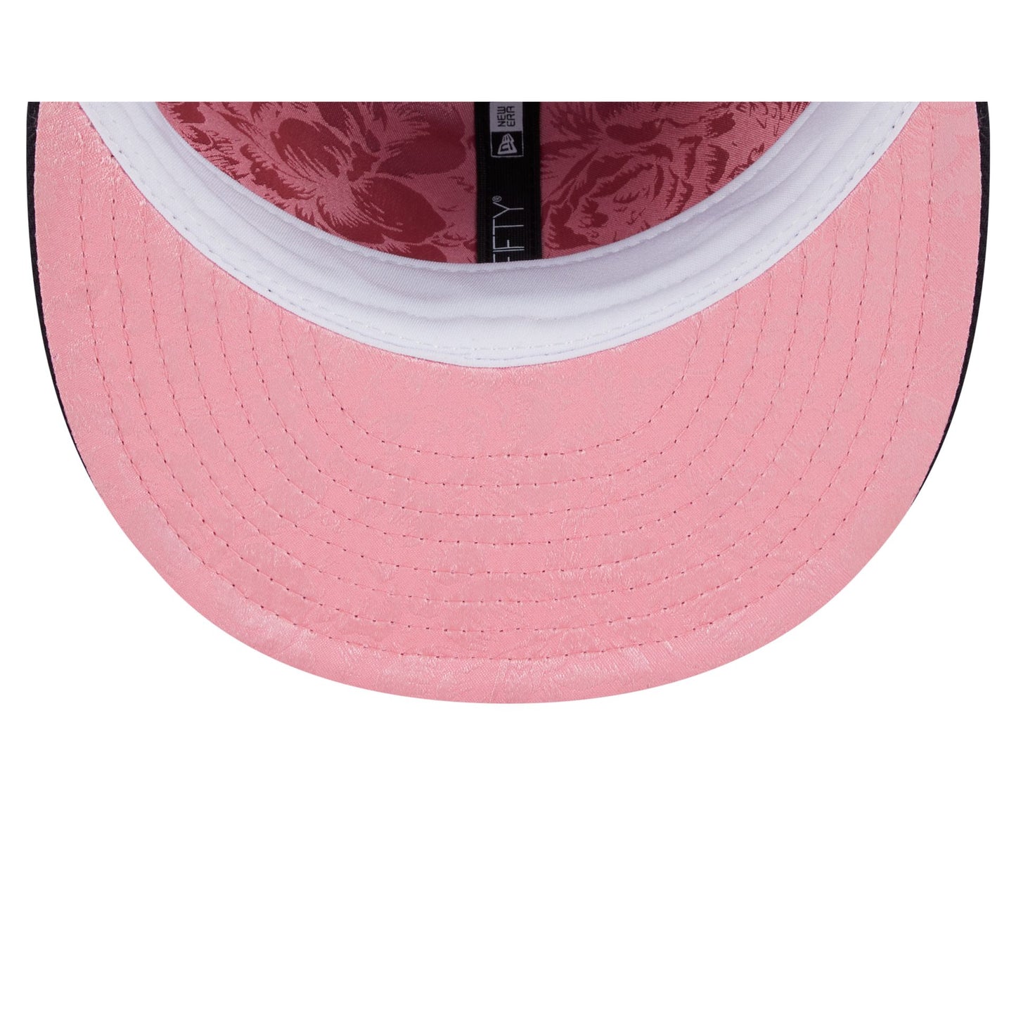 The Houston Astros Floral Undervisor 59FIFTY Fitted Cap features an embroidered Astros logo at the front panels with a matching MLB Batterman logo at the rear. Additional details include a floral team patch at the right-wear side with a pink floral undervisor and lining.